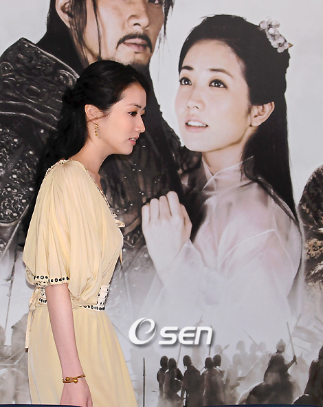 KBS 새 수목 드라마 '바람의 나라' 제작보고회가 4일 용산 CGV에서 강일수 감독, 주연배우 송일국, 정진영, 최정원, 박건형, 오윤아, 김상호, 박상욱, 김재욱, 김혜성, 장태성이 참석한 가운데 열렸다. '바람의 나라'는 고구려 3대왕 대무신왕의 전기를 그린 김진의 동명만화를 드라마화 한 작품이다. 드라마에서 송일국의 연인으로 나오는 최정원이 기자간담회장에 들어서 자리를 찾고 있다./손용호 기자spjj@osen.co.kr