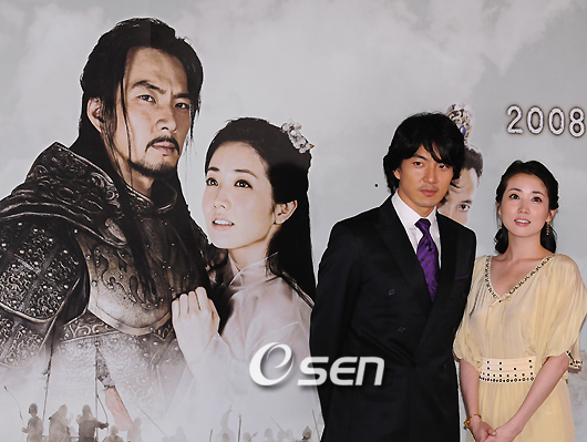 KBS 새 수목 드라마 '바람의 나라' 제작보고회가 4일 용산 CGV에서 강일수 감독, 주연배우 송일국, 정진영, 최정원, 박건형, 오윤아, 김상호, 박상욱, 김재욱, 김혜성, 장태성이 참석한 가운데 열렸다. '바람의 나라'는 고구려 3대왕 대무신왕의 전기를 그린 김진의 동명만화를 드라마화 한 작품이다. 드라마에서 대무신왕과 연으로 나오는 송일국과 최정원이 포토타임을 갖고 있다./손용호 기자spjj@osen.co.kr