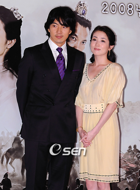 KBS 새 수목 드라마 '바람의 나라' 제작보고회가 4일 용산 CGV에서 강일수 감독, 주연배우 송일국, 정진영, 최정원, 박건형, 오윤아, 김상호, 박상욱, 김재욱, 김혜성, 장태성이 참석한 가운데 열렸다. '바람의 나라'는 고구려 3대왕 대무신왕의 전기를 그린 김진의 동명만화를 드라마화 한 작품이다. 드라마에서 대무신왕과 연으로 나오는 송일국과 최정원이 포토타임을 갖고 있다./손용호 기자spjj@osen.co.kr