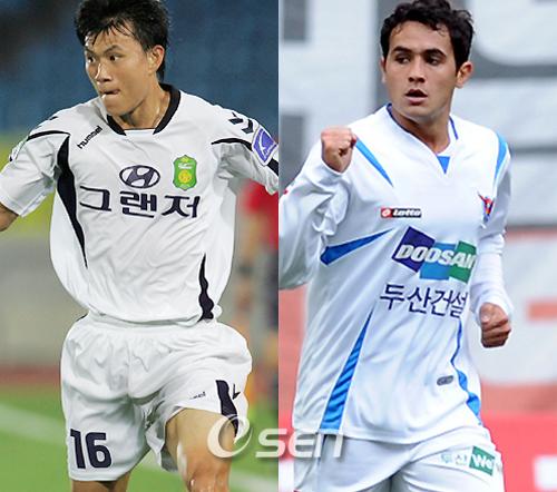 'PO 진출은 내게 맞겨라'. 최강희 감독이 이끄는 전북 현대가 오는 6일 오후 6시 전주 월드컵경기장에서 열리는 삼성 하우젠컵 대구 FC와 경기를 이겨 플레이오프 진출을 확정짓겠다는 의지를 보이고 있다. 컵대회서 4승 3무로 무패를 기록하며 B조 2위를 달리고 있는 전북은 대구와 경기서 승리를 거두면 사실상 조 2위까지 올라가는 플레이오프 진출을 확정짓는다. 올 시즌 정규리그서 맥을 못추고 있는 전북은 컵대회 호성적을 통해 분위기 반전이 필요한 상황. 하지만 상황은 좋지 않다. 공수의 핵인 조재진과 강민수가 대표팀 차출로 인해 빠지게 된 것. 그러나 주장 정경호를 비롯해 새롭게 팀에 합류한 다이치-루이스 등 외국인 선수들을 내세워 대구의 골문을 위협할 전망이다. 특히 전북은 정경호의 빠른 발에 큰 기대를 걸고 있다. 올 시즌 3득점 밖에 기록하지 못했지만 주장으로 책임감을 가지고 있는 정경호는 팀이 어려울 때 한 번씩 폭발하고 했다. 3승 1무 4패를 기록하고 있는 대구는 남은 2경기를 모두 승리해야 플레이오프를 가늠할 수 있는 성적이다. 공격축구로 대변되는 대구가 내세운 선수는 바로 에닝요. 그는 대전전 해트트릭을 포함해 최근 5경기에서 6골 2도움이라는 놀라운 공격 포인트를 올리며 대구를 이끌고 있다. 정규리그 부진을 떨치려는 전북과 공격축구의 기치를 다시 세울 대구의 완산벌 대결서 승자는 누가 될지 주목된다. 10bird@osen.co.kr