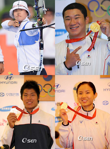 2008 베이징 올림픽을 빛낸 메달리스트가 ‘스타 골든벨’에 총 출동한다. 6일 방송되는 KBS 2TV ‘스타골든벨’에 사격 금메달 진종오, 여자 양궁 단체전 금메달 주현정, 여자 펜싱 은메달 남현희, 체조 은메달 유원철, 유도 은메달 김재범 등이 출연한다. 유도 은메달리스트 김재범은 ‘스타골든벨’에서 거침없는 입담을 자랑하며 ‘리틀 김종국’이라는 별칭을 얻었다. 그는 “메달을 획득하기 전날 하나님 꿈을 꿨다”며 “나의 몸에 레이저를 쐈다”고 밝혀 눈길을 끌었다. 양궁 단체전 금메달의 주인공인 주현정은 “가장 힘들었던 것은 중국 관중들의 좋지 않은 매너였다”며 “양궁 경기에서 가장 중요한 순간인 크래커타임(시위를 당겨놓고 활을 쏘는 시간)에 헛기침 호루라기 소리를 내는 등 결정적인 순간의 위기들이 있었지만 선수들이 잘 싸웠다”고 말해 출연자들의 환호를 받았다. 사격 금메달의 진종오는 “휴가 기간에도 총을 쏘고 싶은 나머지 집에 있는 장난감 총을 손에서 놓지 못한다”며 “놀이동산의 풍선 맞추기 게임을 즐겨 하는데 1등 상품으로 주는 큰 인형을 아내에게 한번 준 적이 있다”고 털어놨다. 또한 “금메달인 줄 모르고 있다가 감독님을 봤는데 엄지 손가락을 치켜 올려 이상하게 생각했었다”며 “그 후 전광판에 뜬 내 이름과 태극기를 보고 금메달을 알게 되었고 그 순간 가슴이 벅차 올라 펑펑 울고 싶었다“고 털어놨다. crystal@osen.co.kr 왼쪽부터 시계방향으로 주현정, 진종오, 남현희, 김재범.