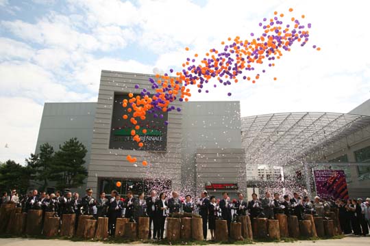 아시아권 비엔날레를 선도하고 있는 ‘제 7회 광주비엔날레’가 5일 개막해 66일간의 대장정에 돌입했다. 광주문예회관에서 유인촌 문화체육관광부 장관을 비롯한 박광태 재단 이사장, 이용우 상임부이사장, 오쿠이 엔위저 총감독 등 국내외 미술계 주요인사와 시민 800여명 등 모두 1800여명이 참석한 가운데 대장정의 시작을 알렸다. 전 세계 36개국 127명의 작가가 참여해 115개 작품을 선보이는 올해 광주비엔날레는 ‘관객이 전시를 보고 느끼는 바가 주제’라는 '주제 없는 전시'를 선보였다. 광주비엔날레 전시관과 광주시립미술관, 의재미술관, 대인시장, 광주극장 총 5개의 전시관에서 전시되며 각각의 전시관은 역사-문화적 고유성을 살려 하나로 연결된 상호연관적인 섹션으로 구성됐다. 전시 구성섹션은 ‘길 위에서’ ‘제안’ ‘끼워 넣기’로 이뤄지며, 첫번째 섹션‘길 위에서’는 2007년 하반기부터 올해 상반기 사이 세계 곳곳에서의 전시를 모았고, 두번째 섹션 ‘제안’은 한국과 미국, 동남아시아, 북아프리카에서 활동한 5명의 큐레이터들의 독자적인 기획과 프로젝트를 제시했다. 마지막‘끼워 넣기’섹션은 올해 비엔날레를 위해 특별히 기획되거나 초대된 작품들로 구성되었다. 이 외에도 관객들의 오감을 충족시킬만한 퍼포먼스와 비엔날레 전시관 테마파크에서 펼쳐지는 시민프로그램 등 다양한 행사가 관객을 기다린다. 비엔날레 전시관 앞 테마공원에 조성된 스튜디오 카페‘발자국’은 시각적 퍼포먼스를 활용한 ‘관객들의 이정표 보고서’와 책 기증 문화를 선보이게 될 ‘움직이는 책수레’ 두 가지 프로그램을 시민에게 볼거리로 제공한다. jin@osen.co.kr 2008광주비엔날레