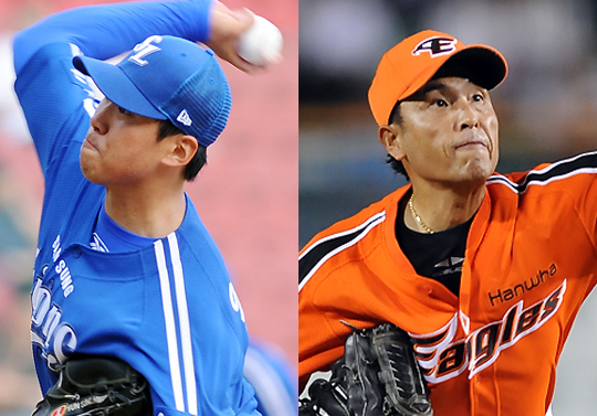 나란히 1승씩 주고 받은 삼성과 한화가 7일 대전구장에서 주말 3연전 마지막 대결을 벌인다. 지난 5일 경기는 한화의 3-1 승리. 선발 류현진은 8이닝 4피안타 6사사구 7탈삼진 1실점으로 시즌 12번째 승리를 따냈다. 전날 경기는 삼성의 5-3 승리. 삼성은 3개의 아치를 쏘아 올리며 한화 마운드를 두들겼다. 특히 톱타자 박한이는 5회 솔로 홈런을 포함, 4타수 3안타 1타점 1득점으로 타선을 이끌었다. 삼성은 우완 윤성환, 한화는 좌완 송진우를 선발 예고했다. 올 시즌 선발 투수로 보직을 바꾼 윤성환은 29경기에 등판, 8승 9패(방어율 3.70)로 팀내 선발진 가운데 가장 좋은 성적을 기록 중이다. 후반기 두 차례 선발 등판에서 13이닝 동안 3점만 허용하며 1승을 따냈다. 한화전에 네 차례 출격해 2승 2패를 거뒀지만 4.82의 방어율은 아쉬운 대목. 공격에서는 '독수리 사냥꾼' 박한이가 윤성환의 승리 도우미로 나선다. 시즌 타율 3할3푼5리 106안타 4홈런 39타점 52득점 5도루를 기록 중인 박한이는 한화와의 대결에서 타율 4할8푼9리(45타수 22안타)로 쾌조의 타격감을 자랑했다. 특히 4개의 홈런 가운데 한화전에서만 3개의 아치를 쏘아 올렸다. 5위 삼성과 0.5게임차에 불과한 한화는 삼성의 추격을 따돌려야 한다. 노련한 송진우에게 거는 기대가 크다. 4승 7패(방어율 4.46)를 거둔 송진우는 6월 12일 삼성전에서 6⅔이닝 1실점으로 승리를 따낸 뒤 5연패에 빠진 상태. 삼성과의 상대 전적은 2승 2패(방어율 3.32). 4강 진출을 위해 치열한 경쟁을 벌이는 삼성과 한화의 주말 3연전 마지막 대결에서 누가 웃게 될지 지켜볼 일이다. what@osen.co.kr 윤성환-송진우.