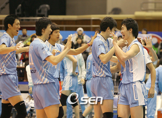 현대캐피탈이 삼성화재를 꺾고 우승을 차지했다. 현대캐피탈은 7일 경남 양산 실내체육관에서 열린 2008 IBK 기업은행배 프로배구 결승에서 박철우의 활약에 힘입어 삼성화재에 3-2(23-25 29-27 25-21 21-25 15-13)의 역전승을 연출하며 우승컵을 손에 쥐었다. 현대캐피탈은 좌우 쌍포 박철우(29점)와 앤더슨(23점)의 공격을 이끈 가운데 이선규(10점, 5블로킹)가 단단한 수비로 그 뒤를 받쳤다. 반면 삼성화재는 외국인 공격수 안젤코가 30점을 기록하는 등 맹활약을 펼쳤지만 팀의 패배로 빛이 바랬다. 삼성화재와 현대캐피탈의 대결은 라이벌답게 접전으로 시작됐다. 그리고 그 대결의 선봉에는 안젤코와 앤더슨이라는 두 팀의 외국인 선수가 있었다. 첫 세트에서는 삼성화재가 미소를 지었다. 15-15로 동점을 이룬 상황에서 안젤코의 오픈 공격이 성공한 반면 앤더슨의 공격이 범실로 끝난 것이 컸다. 현대캐피탈은 박철우의 활약에 힘입어 23-23으로 추격했으나 안젤코에게 백어택과 오픈 공격을 허용하며 첫 세트를 내주고 말았다. 그러나 현대캐피탈의 반격도 매서웠다. 현대캐피탈은 2세트에서 19-22로 뒤지는 등 패색이 짙었으나 박철우와 이선규의 활약을 묶어 분위기 반전에 성공했다. 세 차례의 듀스를 거쳐 앤더슨의 오픈 공격으로 승부를 원점으로 돌린 현대캐피탈은 앤더슨과 박철우 뿐만 아니라 임시형과 하경민 등 전원의 고른 공격이 살아난 끝에 3세트까지 손에 쥐었다. 위기에 몰린 삼성화재를 살리 것은 다름 아닌 현대캐피탈의 잦은 범실이었다. 무려 5개의 서브 범실을 범한 현대캐피탈은 초반 큰 리드를 허용했음에도 불구하고 20-23으로 맹추격을 벌였으나 세트 포인트에서 후인정의 서브가 네트에 걸리며 고개를 숙였다. 마지막 5세트에서는 박철우의 활약이 빛났다. 삼성화재도 고희진의 속공이 살아나고 안젤코가 높은 타점에서 오픈 공격을 펼쳤지만 고비마다 득점을 터트리는 박철우를 막지 못하며 현대캐피탈에 우승컵을 내주고 말았다. stylelomo@osen.co.kr