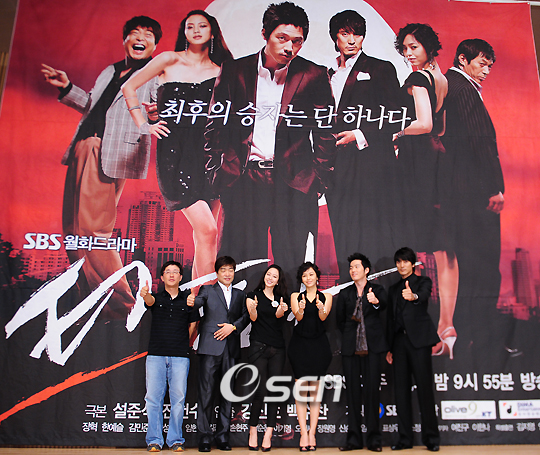 SBS 새 월화드라마 ‘타짜’의 책임 프로듀서가 드라마와 원작, 영화와의 차별화점에 대해 타짜들의 삶의 애환을 녹여낼 것이라고 밝혔다. 7일 오후 2시 목동 SBS홀에서는 ‘타짜’ 제작발표회가 열렸다. ‘타짜’의 이현직 책임 프로듀서는 “영화에서처럼 화려한 기술로 남을 속이고 하는 부분을 부각시킬 수 있겠지만 타짜들의 뒤에는 남모를 애환이 있다”며 “드라마에서는 그들의 삶의 애환을 다뤄볼 것”이라고 말했다. 이어“지금 3사 방송국이 거의 전쟁을 치루듯이 새 드라마들을 쏟아내고 있다”며 “SBS는 봄부터 월화수목금토일 ‘그랜드슬램’을 달성했다. 방송국 17년 만에 처음 겪어보는 일이다. 그런 그랜드슬램을 이번 가을에도 연결시켜보고자 야심차게 준비했다”고 밝혔다. 이어 “탄탄한 원작과 연기자 등이 많이 도와주셔서 홍보가 됐다. 만드는 과정에서 다소 미숙한 점도 있겠지만 앞으로 최선을 다해서 만들겠다”고 연출의 변을 전했다. 동명의 허영만 화백의 원작을 바탕으로 한 ‘타짜’는 지난 2006년 조승우 김혜수 김윤석이 열연, 600여 만 명의 관객을 동원한 바 있다. 강신효 PD는 “유명한 원작만화와 영화가 있어 부담도 됐고, 시행착오도 많이 겪었다”며 “도박이라는 한 단면을 가지고 웃고 우는 세상사를 그려낼 수 있을지 고심했다. 아무쪼록 사랑해주셨으면 좋겠다" 덧붙였다. 주인공 고니 역을 맡은 장혁은 “영화 ‘타짜’에서 마술적인 모습이 많이 그려졌다면 드라마 ‘타짜’에서는 심리적인 싸움을 많이 그릴 것”이라고 차별화점을 설명했다. 장혁, 김민준, 한예슬, 강성연, 손현주 등이 출연할 타짜는 오는 22일 방영 예정이다. yu@osen.co.kr . . . . .