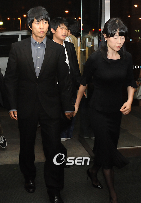 인기 MC 정선희의 남편이자 탤런트인 안재환(36)이 8일 오전 9시 20분께 서울 노원구 하계1동 주택가 골목에 세워져있던 승합차 안에서 숨진 채 발견됐다. 경찰은 숨진 안씨의 시신 옆에서 유서와 화로, 연탄 두 장 등이 발견된 정황으로 미루어 자살로 추정하고 있다. 9일 저녁 최수종 하희라가 빈소가 마련된 강남성모병원 장례식장으로 들어서고 있다./강희수 기자100c@osen.co.kr