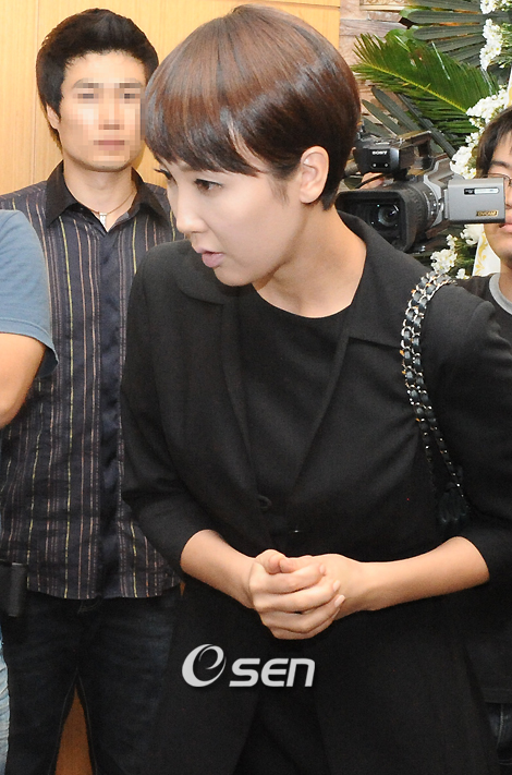 인기 MC 정선희의 남편이자 탤런트인 안재환(36)이 8일 오전 9시 20분께 서울 노원구 하계1동 주택가 골목에 세워져있던 승합차 안에서 숨진 채 발견됐다. 경찰은 숨진 안씨의 시신 옆에서 유서와 화로, 연탄 두 장 등이 발견된 정황으로 미루어 자살로 추정하고 있다. 9일 저녁 최은경 아나운서가 빈소가 마련된 강남성모병원 장례식장에서 나오고 있다./강희수 기자100c@osen.co.kr