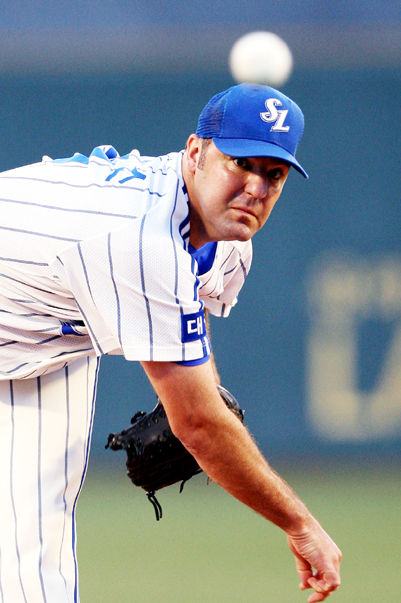 "첫 승을 거둬 너무 기쁘다. 팀이 포스트시즌에 진출하도록 최선을 다하겠다". 삼성 라이온즈 외국인 투수 존 에니스(29)가 국내무대 첫 승을 신고했다. 에니스는 9일 대구 두산전에 선발 등판, 직구 최고 146km를 찍으며 6이닝 3피안타 1볼넷 5탈삼진 무실점으로 팀의 2-0 승리를 이끌었다. 에니스는 삼성의 PO 진출을 위한 히든 카드. 삼성은 기대를 모았던 웨스 오버뮬러(34)와 톰 션(31)을 퇴출시킨 뒤 지난달 에니스와 총액 15만 달러에 입단 계약을 체결했다. 에니스는 베이징 올림픽 휴식기 동안 한화와 롯데와의 두 차례 연습 경기에서 인상적인 투구를 뽐냈으나 공식 무대에 두 차례 선발 투수로 마운드에 올랐지만 승리없이 1패(방어율 6.10)에 그쳤다. 지난달 18일 한화와의 연습 경기에 1-4로 뒤진 5회 두 번째 투수로 마운드에 오른 에니스는 2이닝 4피안타 3탈삼진 2실점으로 주춤했으나 23일 대구구장에서 열린 2군 남부리그 롯데와의 경기에 선발 등판, 직구 최고 148km를 찍으며 4이닝 2피안타 4탈삼진 무실점 호투했다. 에니스는 공식 데뷔전인 지난달 28일 목동구장에서 벌어진 히어로즈와의 원정 경기에 선발 등판, 승패 없이 5이닝 7피안타 1볼넷 6탈삼진 3실점을 기록한 뒤 3일 대구 KIA전에서 5⅓이닝 5피안타(1피홈런) 4볼넷 2탈삼진 4실점으로 패전의 멍에를 썼다. 이날 데뷔 첫 승을 거둔 에니스는 "한국 무대에서 첫 승을 거둬 너무 흥분되고 기쁘다. 평소 하는대로 던졌고 몸쪽 공을 자주 구사했다"고 설명했다. 조계현 삼성 투수 코치는 에니스에 대해 "세 번째 등판에서 스트라이크 존에 적응한 것 같다. 외국인 투수는 적응에 따라 성패가 갈린다"고 강조한 뒤 "올림픽 휴식기 때 투수들이 컨디션 조절을 잘 해 후반기에 제몫을 하는 것 같다"고 말했다. what@osen.co.kr 삼성 라이온즈 제공. . . . . .