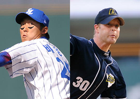 4강 확정을 노리는 삼성과 정규 시즌 2위 수성에 나선 두산이 11일 대구구장에서 한판 승부를 벌인다. 삼성은 두산과의 대결이 4강 진출의 분수령이나 다름 없다. 9일 경기에서 선발 존 에니스(29)의 호투를 발판 삼아 2-0 짜릿한 승리를 거뒀지만 전날 경기에서 '관록파' 조진호(33)와 이상목(37)이 힘없이 무너지는 바람에 3-12로 대패했다. 이날 경기를 승리로 장식하며 두산과의 3연전에서 2승 1패를 노리는 삼성은 배영수(27)를 선발 예고했다. 지난해 오른쪽 팔꿈치 인대 접합 수술을 받은 뒤 올 시즌 복귀한 배영수는 7승 8패(방어율 4.92)로 에이스의 자존심에 적잖은 상처를 받았다. 기교파 투수로 전락했다는 혹평을 들을 만큼 볼 스피드가 줄어들었으나 5일 대전 한화전에서 희망의 빛줄기를 내비쳤다. 6이닝 7피안타(1피홈런) 4볼넷 2실점으로 고배를 마셨지만 올 시즌 처음으로 100개 이상의 공을 던지고 직구 구속도 143km까지 찍었다. 두산과의 상대 전적에서 1승 1패에 불과하나 2.92의 방어율은 안정감을 보여주는 대목. 에이스의 이름으로 삼성의 4강 진출을 견인할 수 있을지 주목된다. 두산은 외국인 투수 맷 랜들(31)을 선발 투수로 내세운다. 7승 8패(방어율 4.77)로 부진의 늪에 빠진 랜들은 후반기 2경기에서 2패로 고개를 떨궜다. 김선우의 부활은 반가운 소식이지만 무너진 선발진이 제 모습을 되찾기 위해 랜들의 부진 탈출은 절실하다. 삼성과의 상대 전적에서 승리없이 2패(방어율 5.85)에 그친 점도 불안 요소. 하지만 전날 경기에서 12점을 뽑아낸 타선이 이날도 제몫을 해준다면 승리 가능성은 높아질 것이다. what@osen.co.kr 배영수-맷 랜들.
