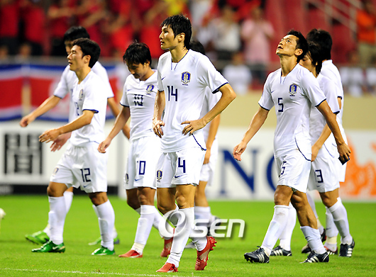 올 시즌 북한과 네 번째 맞대결에서 또 무승부를 기록하며 승점 1점을 챙기는 데 그친 한국의 7회 연속 월드컵 본선행이 험난해 보인다. 허정무 감독이 이끄는 축구대표팀은 지난 10일 중국 상하이에서 열린 2010 남아공월드컵 아시아 최종예선 1차전 북한과 경기서 후반 기성용의 동점골에 힘입어 1-1로 비겨 B조 리그를 이란과 공동 3위로 출발했다. 홍영조에게 먼저 페널티킥으로 선제골을 내준 대표팀은 김두현의 침투 패스를 가슴으로 받은 기성용이 넘어지면서 기습적인 발리슛을 시도하지 않았다면 지난 1990년 평양서 벌어진 남북통일축구 이후 18년 만에 사상 두 번째 패배를 기록했을지도 모를 경기였다. 허정무호는 수비 후 역습으로 나올 북한의 수를 다 알고 있었음에도 효과적인 공격에 실패했고 후반 들어서는 한때 주도권을 내주기도 했다. 하지만 경기는 이미 무승부로 끝났고 승점 1점을 챙긴 것에 만족해야 하는 허정무호는 오는 10월부터 치러질 중동팀들과 경기가 남아 있다. 분위기 반전을 통해 7회 연속 본선 진출에 성공할지 여부는 중동팀들을 겪어 봐야 알 수 있다. 대표팀은 다음달 15일 아랍에미리트연합(UAE)과 홈경기를 시작으로 사우디아라비아 등과 대결이 잡혀있다. UAE는 국제축구연맹(FIFA) 랭킹에서 109위로 같은 조에 속한 이란(46위) 사우디아라비아(48위)보다는 상대적으로 전력이 떨어진다. 상대 전적에서도 7승5무2패로 한국이 앞선다. 북한전을 통해 기성용, 김치우 등 젊은 피의 재발견을 했다고 긍정적으로 평할 수도 있겠지만 승점 1점만을 확보해 돌아온 허정무호는 본선 진출을 위해 중동의 모래바람을 넘어야 하는 험난한 여정이 남아 있어 철저한 준비가 요구된다. 7rhdwn@osen.co.kr . . . . .