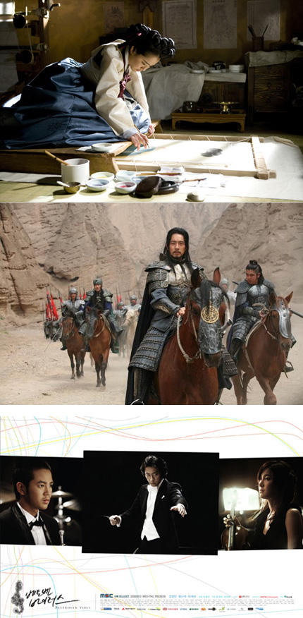 드라마 대란이다. 월화극, 수목극 대결로 드라마 경쟁시장은 포화상태다. 10일 오후 강원도 홍천 대명리조트에서 열린 ‘식객’ 종방연자리에서 만난 SBS 구본근 드라마 국장은 “3사 드라마 경쟁이 지나치다”며 과도한 드라마 경쟁 구도를 꼬집었다. 구 국장은 “경쟁에는 두 가지가 있다. 하나는 의미 있는 경쟁이고 나머지 하나는 의미 없는 경쟁이다”고 말문을 열었다. 그는 “60분 드라마가 70분이 되고, 70분 드라마가 80분이 되는 상황이다. 그러다보니 길이자체가 중요한 인물들만의 얘기만으로는 드라마를 이끌어갈 수 없다”며 “그러기 위해서는 작가들의 역량이 강화되어야 하는데 충분한 시간은 또 주어지지 않는다. 이런 러닝타임 경쟁은 지양돼야 할 것”이라고 주장했다. 구 국장은 예전 기자와 만난 자리에서 “만약 시청률이 13%, 13.5%, 14%나 15%가 나왔다면 표면적으로 시청률은 다 골고루 비슷한 것"이라며 "몇 프로 조금 더 나왔다고 이겼다고 하는것은 의미 없는 경쟁”이라고 말한 바 있다. 그는 “앞으로 의미 있는 드라마 경쟁이 되려면 러닝타임이 아닌 신선한 기획과 완성도 있는 제작으로 경쟁을 펼쳐야 한다”고 의견을 피력했다. 구 국장은 마지막으로 “하반기는 드라마 ‘경쟁’을 넘어선 ‘혈전’이 될 것”이라며 “3사 드라마 모두 외주 제작보다는 자체제작 비중이 많아질 것으로 앞을 내다봤다. yu@osen.co.kr 위쪽부터 SBS 새 수목극 '바람의 화원', KBS2 TV 수목극 '바람의 나라' , MBC 수목극 '베토벤 바이러스'.
