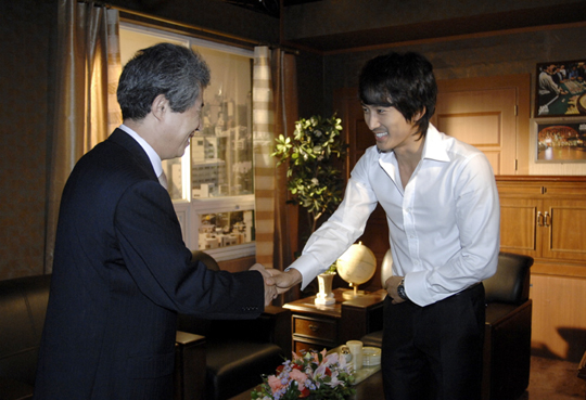 MBC 문화방송 엄기영 사장이 최근 상승세를 타고 있는 MBC TV 월화드라마 ‘에덴의 동쪽’(나연숙 극본, 김진만 최병길 연출)을 직접 응원하고 나서 눈길을 끌었다. 15일 MBC 엄기영 사장을 비롯한 임원진들은 ‘에덴의 동쪽’ 세트 촬영지인 일산드림센터를 찾아 연기자들과 스태프를 격려했다. 엄 사장은 연기자들과 김진만 PD, 카메라 감독 등 스태프들과 악수를 나누며 수고에 대한 감사를 표했다. 추석 당일 날에도 쉬지 못하고 촬영에 임하고 있는 송승헌 등 연기자들에게 엄 사장은 “촬영 때문에 많은 사람들의 추석이 엉망이 됐다”며 미안함을 표시했고 “극 중 대사에서 큰 병원 가려면 장성에 가야 한다며 장성이라는 지명이 나오는데 거기가 내 고향이다”며 ‘에덴의 동쪽’ 열혈 시청자임을 밝혔다. 엄 사장은 또 대본을 집필하고 있는 나연숙 작가를 찾아가 작품 이야기를 함께 나누는 등 ‘에덴의 동쪽’에 대한 기대를 표시했다. 한편 15일 20.5%(AGB닐슨)의 시청률을 기록하며 20% 고지를 넘긴 ‘에덴의 동쪽’은 동철(송승헌 분)과 카지노의 대부 국회장(유동근 분)의 딸 영란(이연희 분)의 애정 라인이 드러나면서 앞으로 펼쳐질 두 사람의 이야기에 관심이 모아지고 있다. 매주 월, 화 밤 9시 55분 방송. ricky337@osen.co.kr MBC 제공.