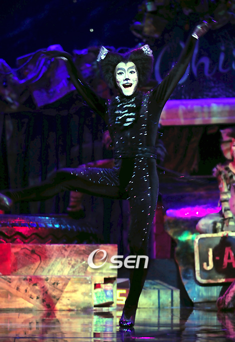 뮤지컬 탄생 27년만에 한국어로는 첫 공연을 앞둔 뮤지컬 '캣츠'의 프레스 콜 행사가 17일 샤롯데 시에터에서 열렸다. 한국 공연은 신영숙 옥주현이 그리자벨라 역에, 김진우 '빅뱅'의 대성이 럼 텀 터거 역에 더블캐스팅 되어 수준 높은 무대를 선보인다. 마법사 고양이 미스터 미스토펠리스 역의 유회웅이 멋진 무대를 보여주고 있다./손용호 기자spjj@osen.co.kr