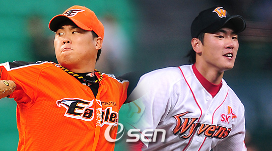 "두산전 다 이기면 한 번 생각해볼께". SK 김성근(66) 감독이 두 괴물 류현진(21, 한화)과 김광현(20, SK)간의 첫 맞대결에 대한 질문에 웃으며 한 말이다. 그러나 이제는 실현 가능성을 완전히 배제할 수 없다는 점에서 관심이 모아진다. 김 감독은 지난 16일 잠실 두산전에 앞서 '류현진(21, 한화)과 김광현(20, SK)의 빅매치를 보고 싶다'는 주위의 요청에 대해 "두산과의 2연전을 다 이기면 한 번 생각해보겠다"고 밝혔다. 당시 상황에서는 SK가 두산과의 맞대결에서 두 번 모두 이긴다는 보장도 없었을 뿐더러 류현진과 김광현의 로테이션이 서로 어긋나 있는 상태였기에 맞대결 성사 가능성은 희박해 보였다. 따라서 그저 지나가는 농담에 불과했다. 그러나 SK가 16일과 17일 두산전을 모두 승리로 장식함에 따라 괴물간의 맞대결 가능성이 수면 위로 급부상했다. 일단 맞대결 분위기는 반 이상 조성돼 있다. 김인식 한화 감독은 류현진을 오는 23일 양팀간 정규시즌 마지막 맞대결인 문학 SK전과 30일 대전 두산전에 등판시킬 것이라고 밝힌 상태다. 한화가 잔여경기를 가장 적게 남겨두고 있어 일정에 여유를 갖게 된 까닭이다. 이제 남은 것은 김성근 감독의 결단만 남았다. 긍정적인 요소는 역시 여유가 생겼다는 점이다. 지난해 세운 구단 최다승인 73승을 넘어선 74승째를 올린 상태고 매직넘버도 3으로 줄어있다. 오는 23일에는 이미 한국시리즈 직행을 확정지은 상태일 가능성이 높다. 김성근 감독도 16일 경기 전 "두산과의 2연전을 다 이기면 한국시리즈 직행에 어느 정도 마음이 놓일 것 같다"고 털어놓았다. 또 김성근 감독이 평소 야구팬들에 대한 애정을 숨기지 않고 있다는 것이다. 올 시즌 야구장을 찾아준 수많은 야구팬들에게 마지막 볼거리를 제공한다는 측면에서 전격적인 김광현의 투입을 결정할 수도 있다. 19일 문학 히어로즈전에 등판할 것으로 보이는 김광현의 로테이션을 보면 24일 문학 LG전에 등판하는 것이 맞다. 하지만 김성근 감독이 김광현의 등판을 하루 앞당길 수도 있다. 하지만 결국 실현되지 않을 가능성도 절반이다. 김광현은 올 시즌 단 한 번도 4일 등판에 나선 적이 없다. 최소 5일 등판이었다. 게다가 김광현은 지난 6월 22일 문학 삼성전에서 시즌 10승을 거둔 후 허리 통증을 호소, 엔트리에서 제외된 경험을 갖고 있다. 김성근 감독 입장에서는 한국시리즈를 대비해야 한다는 측면을 고려할 때 굳이 에이스 김광현을 무리시키면서까지 모험을 걸 필요가 없다. 자칫 잘못했다가는 대사를 거르칠 수도 있기 때문이다. 게다가 다승1위(14승), 방어율 3위(2.66), 탈삼진 2위(127개)를 달리고 있는 김광현의 타이틀도 신경써야 한다. 굳이 류현진과 맞붙어 출혈을 감수해야 할 필요는 없다. 야구관계자들은 오히려 가능성이 희박하다고 예상하고 있다. '원조괴물'과 '신괴물'로 각각 평가받는 류현진과 김광현은 지난 6월 22일 등판 간격이 맞아 떨어지면서 다음 경기인 27일 문학경기에서 맞대결 가능성이 있었다. 그러나 김광현이 허리 부상으로 전력에서 이탈, 아쉽게 맞대결은 이뤄지지 않았다. 사상 첫 올림픽 금메달을 한국 국민에게 선사한 일등공신인 류현진과 김광현의 괴물 맞대결이 500만 관중 시대를 앞두고 있는 2008 프로야구의 대미를 장식할 것인가. 김성근 감독의 결정에 달려있다. letmeout@osen.co.kr 류현진-김광현. . . . . .