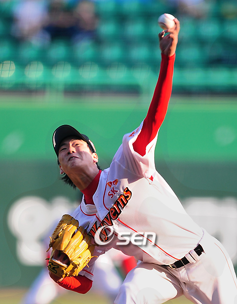 "한국시리즈에서 반드시 2승 하겠다". 여유가 넘치는 미소를 띤 얼굴이었지만 소감 만큼은 당찼다. 김광현은 21일 문학 KIA전에 선발 등판, 6이닝 동안 단 1안타만 맞은 채 3개씩의 삼진과 볼넷을 기록, 무실점으로 시즌 15승(4패)째를 올렸다. 김광현은 2위 그룹(13승)인 류현진(한화)과 윤석민(KIA)을 2승 차이로 따돌리며 다승 타이틀에 바짝 다가섰다. 더불어 방어율은 2위를 유지했지만 2.55까지 떨어뜨려 1위 윤석민(2.44)에 0.11차로 바짝 다가섰다. 탈삼진은 3개를 보태 130개로 1위 류현진(134개)에 4개차 2위. 류현진에 이은 2년만의 투수 트리플 크라운이 가시권에 들어왔다. 그러나 무엇보다 팀의 페넌트레이스 우승을 확정지은 날 승리투수가 됐다는 기쁨이 더했다. 팀이 거둔 77승 중 15승을 책임진 에이스로서 더 큰 미래의 영광을 바라보는 성숙함을 드러냈다. 김광현은 "오늘 컨디션이 너무 좋지 않았다. 그렇지만 동료들의 호수비가 나와줬고 상대 타자들이 서둘러줘 결과가 좋았다"고 소감을 밝혔다. "올해는 헹가래를 치는 등 조용히 넘어갔던 작년과는 사뭇 다른 모습 때문인지 정규시즌 우승을 느낄 수 있었다"는 김광현은 "한국시리즈에서 반드시 2승을 거둬 우승에 일조하겠다"고 강조했다. 특히 김광현은 김성근 감독께 감사하다면서도 "아직은 드릴 말씀이 없다. 한국시리즈에서 우승을 확정한 후 편하게 만나뵌 후 말씀 드리겠다"며 "작년 시리즈 때부터 계속 기용해주셨고 타이틀에도 많은 신경을 써주셨다"고 덧붙였다. 김광현은 이날 승리로 2004년 이승호 이후 토종 국내 투수로는 첫 팀내 15승 투수로 등극했다. 앞으로 1승이라도 거두면 김광현은 팀내 새로운 프랜차이즈 역사를 바꾸게 된다. letmeout@osen.co.kr '2008 삼성 PAVV 프로야구' SK 와이번스와 KIA 타이거즈의 경기가 21일 인천 문학야구장에서 벌어졌다. SK는 이 경기서 이기면 페넌트 레이스 우승을 확정짓는다. 1회초 2사 2루 이재주의 내야플라이 타구를 김광현이 포수 정상호에게 콜 플레이를 하고 있다./문학=손용호 기자spjj@osen.co.kr