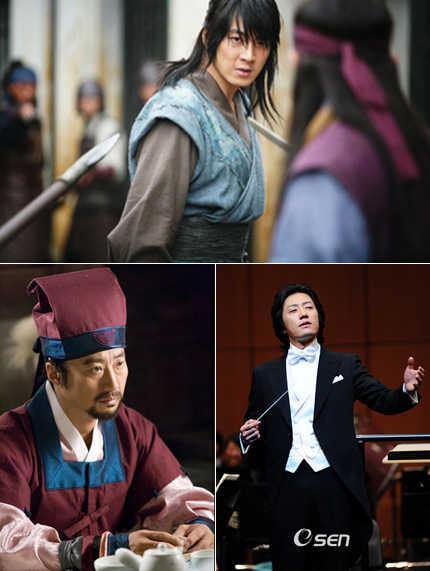 붓 vs 검 vs 지휘봉 붓과 검과 지휘봉, 과연 누구의 손에 들린 것이 강할까. 우위를 가릴 수 없는 접전이 예상되는 가운데 하나뿐인 수목극 왕좌를 두고 박신양 송일국 김명민이 저마다의 무기를 꺼내들었다. 이미 경쟁을 시작한 MBC ‘베토벤 바이러스’와 KBS 2TV ‘바람의 나라’에 이어 오는 24일 SBS ‘바람의 화원’까지 최종적으로 가세하면 치열한 수목극 별들의 전쟁이 펼쳐진다. 김명민-천재 지휘자 강마에 메스대신 이번에는 지휘봉을 들었다. 지난해 MBC '하얀거탑'에서 천재 외과의 장준혁으로 분해 열연을 펼친 김명민은 '베토벤 바이러스'(홍진아 홍자람 극본, 이재규 연출)에서 천재지휘자 강마에로 변신했다. 그 동안 젠틀하고 세련된 연기를 선보여 온 김명민의 냉혈한 연기와 나머지 출연자인 이지아, 장근석, 박철민, 이순재 등 신-구의 조화가 국내 최초 휴먼 음악 드라마라는 이색적인 드라마 소재에 힘을 더한다. 김명민은 극중 완벽한 지휘와 함께 독특한 말투를 구사, 매 회마다 ‘강마에 어록’을 탄생시키며 화제를 모으고 있다. 김명민은 드라마를 위해 서울 내셔널 심포니 오케스트라 예술감독 서희태 지휘자로부터 지휘법까지 배웠다고 한다. 송일국-고구려 3대왕 대무신왕 이번에는 검이다. 2004년 KBS 2TV '해신', 2006년 MBC '주몽' 등 사극에서 강한 면모를 보인 송일국은 올해 KBS 2TV ‘바람의 나라’(정진옥 박진우 극본, 강일수 연출)에서 또 한 번 사극 불패 신화에 도전한다. 동명의 김진의 만화가 원작인 ‘바람의 나라’는 고구려 대무신왕 ‘무휼’과 그 주변 인물들을 통해 한민족의 상고사를 다룰 판타지 사극. 극중 송일국은 고구려 3대왕인 대무신왕 무휼 역으로 변신한다. 전작에서 '주몽'을 연기했던 송일국이 '바람의 나라'에서는 주몽의 손자인 무휼로 분한 점은 시청자들의 눈길을 끄는 대목이다. 비슷한 시대적 배경과 캐릭터를 뛰어 넘어야 할 과제로 지적된다. 과연 송일국이 사극 3연타석 홈런을 칠 수 있을지 관심을 모은다. 박신양-조선시대 천재화가 김홍도 그런가하면 박신양은 데뷔 13년만에 ‘바람의 화원’ 김홍도 역을 통해 첫 사극에 도전한다. 동명의 이정명 작가의 소설이 원작인 '바람의 화원'은 조선 후기 천재화가 신윤복과 김홍도의 삶과 그림을 다룰 팩션추리사극. 남장여자 신윤복 역은 5년 만에 브라운관에 복귀하는 문근영이 맡았다. 지난해 ‘쩐의 전쟁’의 사채업자 금나라를 연기, 많은 사랑을 받았던 박신양은 ‘쩐의 전쟁’을 연출했던 장태유 PD와 다시 손을 잡았다. 닮은 외모만큼이나 두 사람의 찰떡궁합이 드라마에 힘을 실어준다. 수차례 대본회의와 미팅을 거치며 드라마 스태프들의 앙상블을 강조한 박신양은 ‘바람의 화원’에 대한 열정을 태우고 있다는 후문이다. 박신양은 “초반이지만 느낌이 아주 좋다. 작품이 끝나면 다들 이런 작품은 처음 해 봤다고 얘기하게 될 것이다”며 작품에 대한 기대감을 드러냈다. 장 PD는 “‘바람의 나라’가 스케일이 굉장히 큰 남성적인 사극이라면, ‘바람의 화원’은 섬세한 감정의 사극”이라며 “감정과 디테일, 그림의 디테일과 예술적 향기로 승부하겠다”고 의지를 다졌다. 과연 수목극 정상 자리는 누구에게 돌아가게 될까. 결과는 시청자의 판단에 달렸다. yu@osen.co.kr 왼쪽부터 시계방향으로 송일국, 김명민, 박신양.