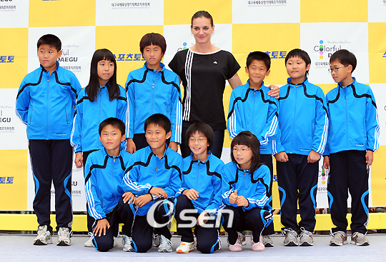 '미녀새' 옐레나 이신바예바(26)가 한국 육상 꿈나무들을 만나 즐거운 시간을 보냈다. 2008 대구국제육상경기대회에 출전하기 위해 방한한 2008 베이징올림픽 여자 장대높이뛰기 금메달리스트 이신바예바는 22일 오후 2시 서울 코엑스 밀레니엄 광장에서 열린 '육상 꿈나무들을 위한 서포트 프로모션'에 참석해 10명의 육상 꿈나무 어린이들과 즐거운 오후를 보냈다. 이번이 한국을 세 번째 방문한 이신바예바는 "한국에 이렇게 저의 팬이 많은 줄 몰랐다. 놀랍다"고 소감을 밝혔다. 육상연맹이 선정한 10명의 육상 꿈나무들을 만나 높이뛰기 자세를 교정해주며 "연습으로만 실력을 키울 수 있다"는 조언을 아끼지 않은 이신바예바는 "항상 기쁜 마음으로 경기에 임하라"는 말을 꿈나무들에게 해주며 격려했다. 한 어린이가 장대높이뛰기를 시도하기 전에 무슨 생각을 하느냐고 묻자 "두려움과 기쁨이 교차하지만 바를 넘으면 지켜보는 사람들이 기뻐할 것을 상상하며 준비한다"고 대답해 긍정의 힘이 세계신기록 원동력임을 강조했다. 꿈나무 10명 모두에게 일일이 사인을 해주며 조언을 아끼지 않은 이신바예바는 20여분간 일반 팬들에게 사인을 해준 뒤 아쿠아리움을 둘러봤다. 상어를 보고 신기해 하는 어린이들을 보며 이신바예바도 잠시나마 운동을 잊고 물고리를 구경했다. 다이버들은 미리 준비한 플래카드 '환영합니다. 이신바예바'를 들고 해저터널에서 등장해 이신바예바를 깜짝 놀래키기도 했다. 7rhdwn@osen.co.kr 여자 장대높이뛰기 세계 기록 보유자 이신바예바가 22일 오후 서울 강남구 코엑스에서 팬 및 육상 꿈나무와 만남 행사을 가졌다. 행사에 참석한 이신바예바가 육상 꿈나무 학생들과 기념촬영을 하고 있다./윤민호 기자 ymh@osen.co.kr