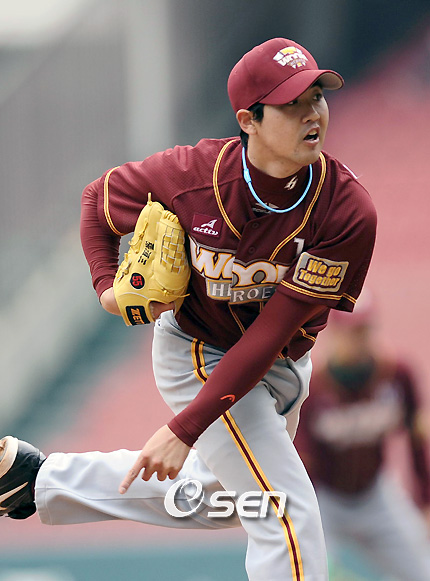 '에이스=연패 스토퍼'라는 공식이 맞아 떨어진 경기였다. 히어로즈가 좌완 에이스 장원삼의 역투에 힘입어 두산 베어스를 제압하고 3연패서 벗어났다. 히어로즈는 24일 잠실구장서 열린 2008 삼성 PAVV 프로야구 두산전서 선발 장원삼의 7⅔이닝 2실점 호투와 1회 상대 실책에 편승해 일찌감치 4점을 뽑아내는 행운을 얻으며 4-2로 승리를 거뒀다. 7위(44승 72패, 24일 현재) 히어로즈는 이날 승리로 최근 3연패를 끊는 동시에 최하위 LG와의 게임 차를 3게임 반 차로 벌여 놓았다. 2위(67승 50패) 두산은 최근 4연승을 끝마쳤으나 같은 시각 롯데가 삼성에 5-8로 패한 덕분에 플레이오프 직행을 위한 유효 승수를 '5'로 줄였다. 히어로즈 타선은 전날(23일) 당한 5-12 대패를 설욕하는 듯이 경기 초반부터 상대 선발 김선우를 두들겼다. 정성훈과 이숭용의 연속 안타로 기세를 올린 히어로즈는 이택근의 2루수 앞 땅볼 성 타구가 상대 2루수 오재원의 실책으로 인해 선제 득점타가 되는 행운을 안았다. 오재원은 2루로 뛰던 이숭용을 글러브만으로 태그하며 1루에 송구했으나 이 또한 이택근의 다리로 향하며 아웃 카운트 조차 잡지 못하고 점수를 내준 송구 실책이 되었다. 두산은 곧바로 오재원을 정원석으로 교체하며 '문책'을 가했으나 선제점을 실책으로 인해 내주며 내려 앉은 분위기를 되살리지 못했다. 히어로즈는 조중근의 1타점 우전 안타와 송지만의 좌중간 1타점 적시타, 김동수의 1타점 중전 안타로 순식간에 4-0을 만들며 초반 기선을 제압했다. 볼 끝의 움직임이 평소보다 무뎌진 모습을 보인 김선우의 1회 4실점은 모두 비자책이었다. 방망이를 잡기 전부터 상승세를 내준 두산은 2회 최준석의 좌월 솔로포(시즌 6호, 비거리 120m)로 만회점을 뽑았다. 볼카운트 1-3에서 가운데로 몰린 장원삼의 직구(142km)를 그대로 노려친 최준석의 배팅 파워가 뛰어났던 장면이었다. 뒤이어 두산은 4회 1사 2루서 김동주의 1타점 우전 안타로 2-4까지 쫓아갔다. 신인 우완 박민석의 호투 아래 1회 이후 한 점도 내주지 않았던 두산은 이대수의 몸에 맞은 볼과 김현수의 좌익수 방면 2루타등으로 1사 2,3루 찬스를 맞았다. 다급해진 히어로즈 배터리는 전날까지 득점권 타율 3할1푼3리를 기록 중이던 홍성흔을 고의사구로 걸러 보내고 최준석과의 대결로 병살타를 노렸다. 히어로즈 배터리의 전략은 그대로 맞아 떨어졌다. 장원삼은 볼카운트 1-2로 타자의 방망이가 나올 타이밍에 맞춰 낮은 제구로 최준석의 땅볼을 유도했고 이는 유격수 앞 병살타로 연결되며 두산의 득점 기회를 소멸시켰다. 장원삼-김동수 배터리의 탁월한 볼배합이 눈에 띈 동시에 최준석의 성급함이 두산 팬들에게 아쉬움으로 다가 온 순간이었다. 히어로즈 선발 장원삼은 7⅔이닝 동안 127개의 공을 던지는 역투를 펼치며 7피안타(사사구 2개, 탈삼진 4개) 2실점으로 호투하며 시즌 11승(8패)째를 올렸다. 특히 장원삼은 7회 1사 1루서 정원석과 17구까지 가는 대결을 펼쳐 한 타석서 가장 많은 공을 던진 투수로 프로야구 연감에 이름을 올리게 되었다. 마무리 다카쓰 신고는 1⅓이닝 무실점으로 지난 12일 LG전 이후 12일 만에 세이브(시즌 7세이브)를 올렸다. 두산 선발 김선우는 1회 오재원이 한 동작으로 저지른 2개의 실책의 부담을 떨치지 못하며 1이닝 동안 5피안타 4실점(비자책)하며 시즌 6패(6승)째를 떠안는 동시에 자신의 5경기 연속 퀄리티 스타트 및 3연승 행진을 끝마쳤다. 세번째 투수로 등판한 신인 박민석은 리드 당한 상황서도 묵묵히 4이닝 동안 1피안타(탈삼진 4개) 무실점으로 호투하며 추격의 발판을 마련했으나 타선 지원을 받지 못하며 프로 첫 승의 기회를 다음으로 미뤄야 했다. farinelli@osen.co.kr