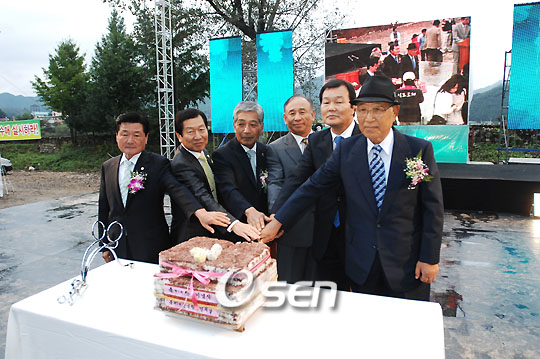 우리나라 한우 농가들의 축제 ‘제 8회 전국 한우인의 날’ 행사가 25일 강원도 홍천군 홍천읍 결운리에서 열렸다. 한우 산업을 안정시키고 농촌의 미래를 보장할 수 있는 길을 찾기 위해 마련된 이날 행사에서 한우인들은 ‘한우산업 미래비전 선포식’을 갖고 브랜드육 시식회를 여는 등 한우 브랜드의 우수성을 홍보했다. 노승철 홍천군수, 박덕배 농림수산식품부 차관, 김명재 한우협회 강원도지회장, 이규석 한우협회초대회장, 남호경 한우협회장, 강성원 강성원우유 회장(왼쪽부터)이 한우산업 미래비전 선포식에서 기념 떡을 자르고 있다. /홍천=강희수 기자 100c@osen.co.kr