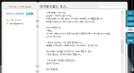 "920여명의 선수들을 생각하자니 차마…". 이제 막 프로에 입단한 한 신인 투수의 배려 깊은 글이 잔잔한 감동을 전하고 있어 화제다. 그 주인공은 지난 24일 SK와 입단 계약을 마친 투수 박현준(22). 박현준은 지난 24일 SK와 입단 계약을 맺은 다음날 새벽 자신의 미니홈피에 기쁨과 아쉬움이 동시에 교차하는 글을 남겼다. '용 심장이 되겠습니다'라는 제목의 이 글은 "어떤 팬분이 그러셔요. SK 입단이 석연치 않으시냐고"로 시작한다. 이에 박현준은 "왜 안기쁘겠어요. 기쁘죠"라면서도 "하지만 기쁘다고 해서 남들 가슴 아픈 거 모른 척 하면서 제 기분 내기에는 좀 아닌 거 같아서요"라고 답했다. 프로구단에 지명받은 기쁨보다는 지명받지 못한 채 다른 길을 찾아나서야 하는 주위의 많은 동료들에 대한 미안한 마음과 배려가 고스란히 담겨 있다. 박현준은 "이 글 쓰고 있는 저도 지금 갈팡질팡합니다. 팬분들 생각하면 어쩌면 당연히 해야하는거 같기도 하고 920여명의 선수들을 생각하자니 차마 못할거 같고…"라고 말해 야구인 실업 문제와 관련한 많은 고민이 있었다는 것을 느낄 수 있게 했다. 그러나 "시즌도 끝났고 계약도 마무리 했습니다"라며 "이제 SK맨이 된 것을 실감하네요. 열심히 할게요. 도장 쾅쾅쾅!"이라고 글을 마쳐 새롭게 각오를 다지는 모습을 보였다. 이 글을 읽은 야구팬들은 "어린 선수가 생각이 깊다"며 "어서 프로에 와 좋은 활약 펼쳐주길 바란다"고 독려하고 있다. 전주고를 나왔고 경희대를 졸업할 예정인 2009년 2차 1번 박현준은 182cm의 키에 82kg의 몸무게를 지닌 당당한 체격을 지녔다. 150km대를 육박하는 직구가 위력적인 사이드암 투수로 완투 능력까지 지니고 있는 유망주. 올해 체코에서 열린 제 4회 세계대학야구선수권에서도 맹활약을 펼쳤다. 계약금 1억 2000만 원, 연봉 2000만 원에 SK와 계약한 박현준은 다른 신인들과 함께 오는 오는 29일과 30일 양일간 스포테인먼트 및 신인 선수로서 갖춰야 할 기본 소양교육을 받게 되며 이후 메디컬 체크를 받게 된다. 한편 SK는 신인 선수에 대한 궁금증을 갖고 있는 팬을 위해 신인 선수 경기 동영상을 SK홈페이지(www.sksports.net)에 업로드했다. 신인 선수들의 모습은 와이번스 미디어 내 와이번스 TV를 통해 확인하면 된다. letmeout@osen.co.kr 박현준 미니홈피 캡쳐 화면.
