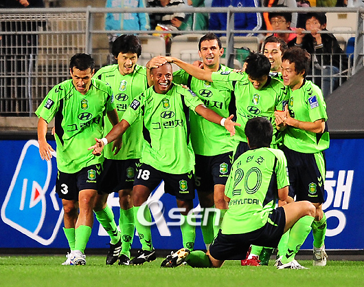 1골 1도움을 기록한 조재진의 맹활약 속에 전북이 수원을 격파했다. 최강희 감독이 이끄는 전북 현대는 27일 수원 월드컵경기장에서 열린 수원 삼성과의 삼성하우젠 2008 K-리그 20라운드 경기서 조재진의 선제골을 넣고 루이스와 다이치가 후반 2골씩 터뜨린 데 힘입어 5-2 대승을 거뒀다. 이로써 전북은 컵대회를 포함해 4연승을 달렸고 수원은 울산, 제주에 이어 전북에 패하며 전반기와 전혀 다른 후반기를 보내고 있다. 1-1로 전반을 마친 전북은 후반 들어 수원에서 버림받은 루이스의 결승골이 터지면서 상승세를 탔고 교체해 들어온 다비치가 추가골을 터트리면서 확실한 승리를 챙겼다. 루이스는 수원을 상대로 경기 시작부터 가벼운 몸놀림을 보여주더니 2골 1도움을 기록했고 조재진은 수원 서포터즈에게 인신공격성 문구를 듣자 자극 받은듯 1골 1도움을 기록하며 활약했다. 이 날 경기는 최근 컵대회를 포함해 3연승을 달리며 리그 6강을 위해 반드시 수원을 잡겠다는 전북과 울산, 제주에 패해 가라앉은 분위기를 끌어올리려는 수원의 맞대결이다. 경기 전 두 팀의 팽팽한 분위기는 경기 내내 이어졌다. 전반 11분 수원은 이관우의 강력한 프리킥 슛으로 분위기를 달궜다. 전북은 권순태 골키퍼가 넘어지면서 막아내 위기를 벗어났다. 전북도 곧바로 루이스가 중앙에서 혼자 볼을 몰고 나가다 중거리슛을 시도하며 대응했다. 슈팅은 골대 왼쪽을 살짝 빗나갔지만 두 팀의 화력은 날카로웠다. 이현승의 날카로운 중거리 슈팅으로 수원 골문을 다시 위협한 전북은 먼저 전반 30분 조재진의 득점으로 앞서가기 시작했다. 페널티지역 오른쪽에서 이현승이 왼쪽에 있던 조재진에게 패스했고 이를 조재진이 침착하게 밀어넣었다. 조재진들은 원정경기지만 2000명이나 경기장을 찾은 팬들에게 달려가 기쁨을 함께 나눴다. 하지만 수원도 금세 반격에 나섰다. 전반 37분 김대의가 올려준 골문쪽으로 올려준 크로스를 신영록이 오른발로 골망을 흔들었다. 전북은 후반 7분 경기 내내 날카로운 크로스를 올려준 최태욱을 빼고 절정의 프리킥 감각을 보여주고 있는 김형범을 교체 투입해 득점을 노렸다. 김형범에 이어 다이치도 기용한 전북은 발걸음이 무거운 수원을 상대로 밀어붙이기 시작했다. 결국 전북은 후반 27분 루이스가 성종현의 패스를 받아 2-1을 만들더니 2분 후인 후반 29분 조재진이 왼쪽에서 크로스를 올려준 것을 다이치가 머리로 골망을 흔들면서 순식간에 3-1을 만들었다. 이후 전북의 기세는 전혀 꺾이지 않았고 후반 33분에는 루이스가 신광훈이 오른쪽에서 올려준 크로스를 넘어지면서 넘어지는 이운재 골키퍼 옆구리 사이로 밀어넣어 4-1을 만들었다. 전북은 후반 37분 다이치가 루이스의 패스를 받아 골문 오른쪽에 다시 밀어넣으며 5-1을 만들며 완벽한 승리를 일궈냈다. 수원은 추가 시간 에두가 골을 넣었지만 2-5로 졌다. ■ 27일 전적 ▲ 수원 수원 삼성 2 (1-1 1-4) 5 전북 현대 △득점=전29 조재진(전북) 전37 신영록(수원) 후27 루이스 후29 다이치 후33 루이스 후37 다이치(이상 전북) 후46 에두(수원) 7rhdwn@osen.co.kr 후반 루이스(가운데)가 2-1로 앞서가는 골을 넣자 전북 동료들이 함께 기뻐하고 있다./수원=손용호 기자spjj@osen.co.kr