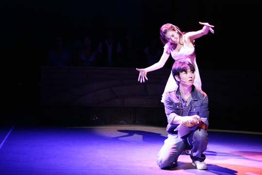 슈퍼주니어 강인과 김희철의 뮤지컬 데뷔작 '제너두(XANADU)’가 폭소 핵폭탄으로 공연계를 강타하고 있다. 지난 9일부터 서울 두산아트센터에서 막을 올린 '제너두'는 개그맨 출신 표인봉이 대표로 있는 SM아트컴퍼니 첫 작품. 표인봉이 직접 프로듀싱과 연출을 담당한 가운데 요즘 뮤지컬 코드인 연예계와의 합작 무대를 성공적으로 펼치는 중이다. 최근 연예인들의 뮤지컬 나들이가 잦아지면서 흥행만을 목표로한 짙은 상업성이 뮤지컬 무대로 옮겨가는 데 대한 우려의 목소리가 컸다. '제너두(XANADU)’의 프레스콜 현장에서 쏘니 역을 열연한 김희철은 "나와 강인이 작품을 망치면 안 된다”는 부담을 느꼈다며 "뮤지컬 무대에 서는 것에 곱지 않은 시선을 느꼈다"고 밝힌 바 있다. 당시 취재진 질문의 80% 이상이 김희철과 강인에게 집중됐고 표인봉은 “연예인들이 뮤지컬을 하는 데 대해 어떻게 생각하느냐”는 첫 번째 물음표를 받아야 했다. 연예인의 뮤지컬 진출에 쏟아지는 일반의 관심이 어떤 지를 그대로 보여주는 대목이다. 이미 표인봉은 ‘굿바이 크리스마스’ ‘루나틱’ ‘동키쇼’ ‘아일랜드’ 등 다수의 연극과 뮤지컬에서 기획-연출력으로 실력을 인정받은 바 있다. 새로 '제너두'를 선택한 이유로 그는 "브로드웨이에서 흥행에 성공한 ‘제너두’를 내가 직접 예술을 창조하는 일의 첫 공연으로 선택했다”며 한국 흥행의 자신감을 드러냈다. 또한 관객과 하나 되는 원형무대를 선보이며 독특한 무대연출로 기존의 객석과 다른 ‘패너두(FANADU : Fan of XANADU)’라는 관객 참여형 객석을 시도, “재미있고 신나고 후련한 뮤지컬” 을 선보일 계획을 엿보였다. 표인봉의 말대로 뮤지컬 ‘제너두(XANADU)’는 달랐다. 막을 올리는 커튼도 없이 남자 주인공 쏘니가 등장해 시작부터 관객과 하나 되기를 시도했다. 공연 내내 관객들의 웃음꽃이 가득했고 “정말 웃긴다”는 속삭임이 객석에서 끊임없이 들려왔다. 역시 한 개그했다는 표인봉의 연출실력을 엿볼 수 있었다. 관객의 객석 ‘패너두’도 새롭다. 정면 객석을 중심으로 연기해오던 기존의 틀을 깨려는 연출의 노력이 엿보였다. 열성팬들에게 배우들의 숨소리를 가까이서 듣게 해주려는 팬 서비스차원의 ‘패너두’가 될 법도 했지만, 배우들은 무대 위에 앉은 관객을 끊임없이 공연에 끌어들여 관객과 하나 됨을 또다시 시도했다. 느닷없이 배우가 말을 걸기도 하고 노래도 함께 부른다. 느끼한 손짓으로 남자관객의 몸을 흩으며 웨이브를 타는 배우의 모습은 한 바탕 웃음거리가 되기도 했다. ‘제너두’는 온갖 음악과 춤이 펼쳐지는 버라이어티한 뮤지컬을 선보인다. 현대무용부터 재즈 릴리컬 스윙 힙합 락댄스 디스코 탭에 이르는 전 세계 춤이란 춤은 다 모았다. 거기에 롤러스케이팅 연기까지 가미해서 관객들은 공연 내내 풍성한 볼거리를 즐겼다. 화려한 조명과 무대 장치, 의상 그리고, 신화 속에 여신들의 에드립 섞인 대사와 몸동작 하나하나가 신선했다. 두산아트센터 연강홀의 전체를 무대로 활용한 것도 관객들의 시선을 끌기에 충분했다. 하지만, ‘제너두’에서 한 가지 크게 아쉬운 점은, 온통 키라의 목소리로 가득 찬 뮤지컬이었다는 점이다. 보는 이도 버거울 정도의 많은 노래 파트를 소화해 낸 여자 주인공의 노력이 대단하다. 뮤지컬 전문 배우, 이건명의 출연이 무색할 정도다. 이건명의 호소력 있는 가창력과 색깔 있는 연기를 기대하고 찾은 팬들은 아쉽기만 했다. 이렇게 남자주인공 ‘쏘니’의 파트가 눈에 띌 정도로 비중이 작은 이유는 무엇일까? 원작에서는 쏘니의 매력으로 키라가 사랑에 빠져야만 하지만, 우리 관객들은 묻혀버린 쏘니 때문에 노력이 가상한 키라의 매력에 빠져야만 했다. 공연내내 이건명의 목소리 듣기를 기다리던 관객들은 내노라하는 조연들의 역할로 쉬 가려질 수 있었다. 특히, 주연 같은 조연에 ‘멜포메네’ 역의 정영주와 ‘칼리오페’ 역의 양꽃님에 호소력 있는 목소리는 관객들의 사랑을 한 몸에 받았다. 뮤지컬 ‘제너두’는 관객들을 배꼽 잡고 웃을 수 있게 하는 ‘재미있고 신나는 뮤지컬’로 확실히 자리매김 하고 있다. 하지만 화려한 무대와 거창한 연출, 정신없이 웃겨대는 조연들의 리얼한 연기들로 관객들이 작품에서 남겨가야 할 감동까지 너무 ‘후련’하게 비우고 가지 않도록 원작에서의 작품성은 잊지 말아야 할 것이다. jin@osen.co.kr ‘쏘니’역 이건명과 ‘키라’역 최유하의 공연 / 투비컴퍼니 제공.