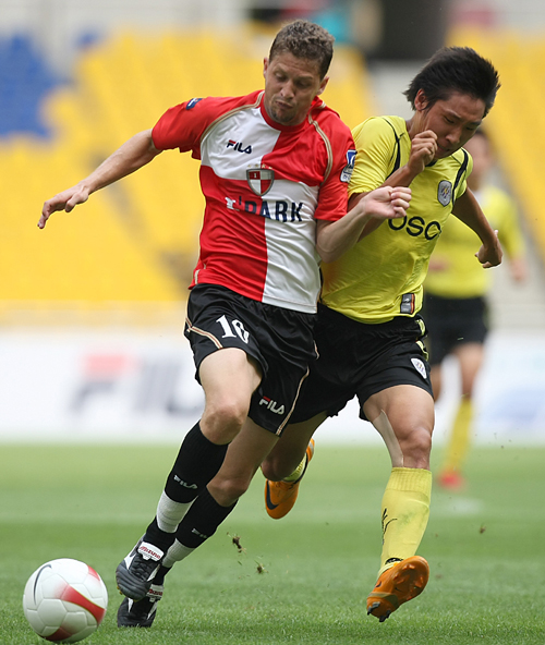 '컵대회서 만큼은 좋은 성적을 내야 한다'. 정규리그서 각각 11위, 13위로 하위권에 처져 있는 전남 드래곤즈와 부산 아이파크가 오는 10월 1일 부산 아시아드주경기장에서 삼성 하우젠 K리그 2008 컵대회 6강 플레이오프 일전을 펼친다. '디펜딩 챔피언' 자격으로 조별리그를 거치지 않고 플레이오프에 직행한 전남은 A조서 5승1무4패 승점 16점으로 2위를 차지한 부산과의 대결이 부담스럽다. 지난 13일 전남과 홈 경기서 2-0 완승을 거두며 전남전 8경기 연속 무승행진에 종지부를 찍은 부산은 최근 홈에서 벌어진 4경기서 2승2무를 기록하며 상승세를 타고 있다. 특히 팀의 중심인 안정환이 최근 2경기서 1골1도움을 기록하며 공격의 핵으로 자리잡으며 고참으로 솔선수범하고 있다. 또 후반기 입단한 구아라는 5경기 연속골 행진을 기록한 정성훈의 도우미 역할을 하며 부산의 공격력을 배가시켰다는 평가를 받고 있다. 최근 부상으로 주춤했던 구아라는 이번 전남과 대결서 승리를 거두겠다는 강한 의지를 나타내고 있다. 전남의 상황은 부산에 비해 좋지 않은 편이다. 지난 28일 정규리그 20라운드서 FC 서울에 0-3 완패를 비롯해 원정에서만 2연패를 당하고 있다. 또 부산과의 대결서도 이미 한 차례 꺾였기 때문에 쉽게 상대할 수 없다. 주장인 곽태휘가 돌아왔지만 조직력이 예전과 같지 않다. 결국 믿을 만한 존재는 최전방 공격수인 외국인 선수 슈바 밖에 없는 상황이다. 슈바는 부진한 팀의 공격진을 홀로 이끌고 있다시피하고 있다. 자신의 득점과 함께 국내 선수들에게 많은 기회를 만들기 위해 노력하고 있다. 또 박항서 감독은 부산과의 플레이오프를 앞두고 "득점 빈곤이 현실이기는 하지만 공격적인 전술로 부산을 상대하겠다. 수비지향적인 경기보다는 공격으로 풀어나가겠다"고 말하며 슈바의 역할에 큰 기대를 걸고 있다. 10bird@osen.co.kr 지난 13일 부산-전남전=부산 아이파크 제공.