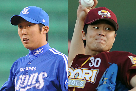 '토종 에이스' 배영수(삼성)와 김수경(히어로즈)이 1일 목동구장에서 자존심을 건 한판 승부를 벌인다. 배영수는 삼성의 세 차례 한국시리즈 우승(2002, 2005, 2006년)의 주역이고 김수경은 현대 시절부터 우완 에이스로 군림했다. 올 시즌 나란히 부진의 늪에 빠졌지만 속된 말로 '썩어도 준치'이다. 배영수는 3년 만에 10승 달성에 도전한다. 2005년 11승 11패(방어율 2.86)를 따낸 배영수는 9승 8패(방어율 4.72)를 기록 중이다. 지난달 11일 두산전에서 5이닝 3피안타 무실점으로 선발승을 거둔 뒤 2연승을 따내 자신감은 가득하다. 3승 6패(방어율 4.10)로 초라한 성적표를 남긴 김수경은 올 시즌 삼성전에서 승리없이 1패(방어율 16.50)로 자존심을 구겼다. 최근 5경기에서 1승 2패에 그쳤지만 방어율 1.83으로 구위는 좋은 편. 양준혁, 박진만 등 베테랑 타자들이 좋은 타격감을 뽐내는 반면 박한이, 최형우, 박석민은 제 모습을 보여주지 못하고 있다. 양준혁과 박진만은 최근 5경기에서 타율 4할6푼2리(13타수 6안타), 5할(16타수 8안타) 맹타를 휘둘렀다. 그러나 박한이는 2할5푼(20타수 5안타)으로 평범한 성적에 그쳤고 최형우는 2할3푼5리(17타수 4안타), 박석민은 5푼3리(19타수 1안타)로 부진의 늪에 빠졌다. 왼손 중지 인대 부상을 떨쳐내고 이날 경기부터 출장할 예정인 채태인의 불방망이도 관전 포인트. 채태인은 목동구장의 사나이라는 수식어처럼 히어로즈와의 원정 경기에서 펄펄 난다. 타율 4할2푼4리(33타수 14안타) 3홈런 10타점 8득점. what@osen.co.kr 배영수-김수경.