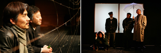 2005년에 초연된 윤영선 극본, 이성열 연출의 ‘여행’이 작가가 세상을 뜬 지 1년 여 만에 대학로 정보소극장서 재연됐다. 그 생생함을 느끼기 위해 작가 윤영선을 사랑하는 이들이 객석을 가득 채웠다. 연극이 끝나고 소극장을 빠져나오며 연령층 다양한 관객들은 가지각색의 평을 늘어놓는다. “참 좋다” 푸근해하며 후한 점수를 주는 50대와 “씁쓸하다” 가슴에 뭔가 남았다는 40대, “모르겠다” 뜻이 있으려니 싶은 20-30대가 있다. 윤영선 작가는 관객에게 어떤 감동을 주려 했을까? 중년의 다섯 남자들이 갑작스런 친구의 죽음으로 1박 2일의 낯선 장지로 향한다. 그들의 여정은 마치 단풍놀이 떠나는 이들처럼 들떠있고 시끌시끌하다. 객사한 친구를 찾아가는 길이 창원인지, 신창원인지 구분조차 못하고 떠나는 이들은 ‘친구’의 죽음 앞에서도 이기적이다. ‘죽은 줄 알았던 친구’의 갑작스런 등장과 살아있는 이들의 다툼은 썰렁한 장례식장에서 고인이 된 친구 여동생의 “죽은 우리오빠만 불쌍하제” 라는 대사와 절묘하게 오버랩된다. 오랜 친구들과의 만남으로 되찾은 과거의 추억들은 그들을 점점 어지러운 세상으로 인도하고 떠나왔던 길을 어렵게 어렵게 다시 되돌아가는 인생을 익살스럽게 그려냈다. 종이보드로 만든 엑스트라와 끊임없이 마셔대는 팩소주, 그들의 음담패설은 무대 위를 가득 채웠다. 무대는 이성열 연출자 특유의 소박하고 가난한 무대로, 삶과 죽음에 대해 썰렁하고 서늘하게 표현했다. 음향으로 장소구분을 하고 배우들의 연기로 관객들을 끌어들이는 무대효과는 성의 없어 보일 법도 하지만, ‘연극다운 연극’으로 관객들을 당황스럽게 하는 이성열 연출자의 매력이기도 하다. 연극 ‘여행’은 현실을 살면서 인생의 동반자라 불리는 ‘친구’의 존재와 피할 수 없는 현실의 이기적인 나를 대비시키고 있다. 누구나 안고 사는 패러독스를 소박하고 걸쭉하게 묘사하여 관객들의 가슴속에 조용히 스며들게 했다. 작가 특유의 사변적이고 해체적인 경향을 여실이 보여준다는 평을 듣는 대표작으로 윤영선이 경험한 사실을 연극 ‘여행’을 통해 무대에 올림으로써 그가 말하고자 했던 건, 리얼한 삶이었다. 작가가 유도했던 것이 ‘삶’이었기에 관객들은 자신이 느낀 감동조차 이기적이다. 작가 윤영선이 세상을 뜨고 작품만 남아 있는 지금, 관객들은 무대 위 작품 속에서 무엇인가를 찾아 담아가려 했을 것이다. 그러나 그 해답은 각자의 ‘삶’에서 느낄 줄 아는 감동의 깊이 따라 달랐다. 연극 ‘여행’에서 윤영선이 말하고자 했던 것은, ‘친구’ ‘죽음’ ‘윤영선’… , 그 어떤 것도 아닌, 개인의 ‘삶’ 그 자체가 아닐까. 간암으로 눈을 감기 얼마 전, 병상에 누워 자신의 이름을 '나무윤영선꽃'으로 개명하겠다는 뜻을 글로 남겼다는 극작가 윤영선이다. 이제 그는 자신이 남긴 작품으로 그가 베풀었던 사랑을 통해 우리 가슴 속에 남는 영원한 '나무윤영선꽃'이 되어 피어나고 있다. jin@osen.co.kr 연극 ‘여행’의 공연 장면.