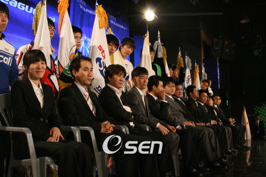 프로리그가 08-09시즌 개막을 사흘 앞두고 1일 프로리그 08-09시즌 출정식이 열렸다. 10개월간의 대장정에 나서는 프로게임단 감독들은 2008시즌 우승팀인 삼성전자 김가을 감독을 시작으로 자신들이 세운 목표로 달리겠다는 포부를 자신있게 밝혔다. ▲ 김가을 삼성전자 감독=이미 우승할 준비는 돼있다. 충분히 다음 시즌도 광안리서 우승할 수 있다고 생각한다. 기대하셔도 좋다. ▲ 박용운 SK텔레콤 감독=우승이라는 목표는 당연하다. 한 가지 더 목표를 세운다면 새로운 시즌에는 코칭스태프의 전문화를 시킬거고, 개개인의 전력을 강화하는 모토로 가지고 갈 것이다. T1이 독일 전차와 같은 탄탄한 이미지를 갖는 것이 목표다. ▲ 이명근 온게임넷 감독=이번 시즌 역시 파이팅 넘치는 모습으로 우승기에 도전하겠다. ▲ 김은동 STX 감독=지난 시즌 너무 아쉬움이 많았다. 이번 시즌 이야말로 우승할 수 있는 절호의 기회로 믿고 나아가겠다. 충분히 우승할 수 있을거라고 믿는다. ▲ 이지훈 KTF 감독=비시즌 동안 팀에 많은 변화가 있었다. 선수단 전체가 젊어졌다고 할 수 있다. 젊은과 패기로 우승에 도전하겠다. ▲ 조정웅 르까프 감독=어게인 2006이다. 창단때의 마음으로 돌아가 더욱 강한 팀으로 만들겠다. 최고 강팀으로 거듭나겠다. ▲ 김양중 위메이드 감독=이번 시즌 우승을 목표로 달리겠다. 원종욱 코치가 폭탄주를 잘 만드는데 우승 트로피에다가 꼭 소맥 폭탄주를 마시겠다. ▲ 김혁섭 MBC게임 감독=우리보다 약한팀에는 절대로 지지 않겠다. 또 연패도 당하지 않겠다. 역전패 또한 당하지 말자고 선수들과 약속했다. 우리의 1차 목표는 4강이다. 충분히 가능할거라고 생각한다. ▲ 조규남 CJ 감독=지난 시즌 뼈아픈 순위를 당했다. 그 아픔을 잊지 않았다. 이번 시즌 열심히 해서 좋은 성적을 거두겠다. ▲ 이재균 웅진 감독=이 자리에 서는게 굉장히 떨린다. 모두에게 미안한 얘기지만 우승 트로피는 내꺼다. 2번째 우승에 도전하겠다. ▲ 유성렬 공군 감독=팬과 협회 분들로 인해 많은 어려움을 이겨냈다. 비오면 땅이 굳듯이 좋은 성적 낼 것이다. 많은 기대와 응원 바란다. ▲ 김현진 이스트로 감독=지난 시즌 성적이 안 좋았는데, 비시즌 많이 노력했다. 이번 시즌 기대해 주셔도 좋다. 많이 지켜봐 달라. scrapper@osen.co.kr