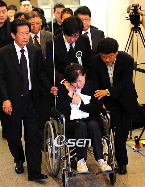 2일 오전 자택에서 숨진 채 발견된 고 최진실(향년 40세)의 입관식이 가족과 동료 연예인들의 참관 속에 진행됐다. 3일 오후 2시 고인의 빈소가 마련돼 있는 삼성서울병원에서는 최진실 동생 최진영과 가족들, 동료 연예인 정선희, 이영자와 전 남편 조성민 등이 참관한 가운데 조용히 입관식이 진행됐다. 휠체어를 탄 채 입관실로 향한 최진실의 어머니는 계속해서 ‘아이고, 아이고’라며 통곡했고, 최진영 역시 하염없이 눈물을 흘려 주변 사람들을 안타깝게 했다. 입관식이 진행된 지 15분이 지나 최진실의 어머니는 입관식을 채 마치지 못한 채 가족들의 부축을 받고 나왔으며, 그 후 다시 15분 가량이 지나 동생 최진영과 정선희, 이영자 등이 눈물로 범벅된 얼굴로 입관식장을 빠져 나왔다. 입관식장을 빠져 나온 최진실의 한 측근은 “원래 입관에는 가족들만 참관하게 되어 있는데 생전에 절친했던 정선희와 이영자 역시 참관을 원해 입관식장에 함께 들어갔다. 입관식장 안은 눈 뜨고는 볼 수 없을 정도로 슬펐고, 엄숙했다”고 전했다. 한편 입관을 마친 고인의 시신은 4일 오전 7시 30분께 발인 예배를 마친 후 8시 30분에 발인될 예정이다. 그 후 오전 10시 성남 영생원에서 화장한 후 경기도 양수리에 있는 갑산 공원에 안치될 것으로 보인다. ricky337@osen.co.kr 손용호 기자 spjj@osen.co.kr