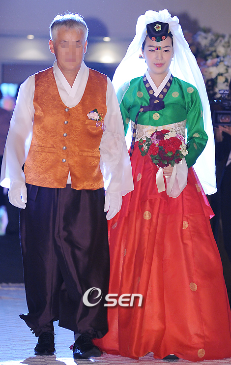 개그맨 염경환(36)의 결혼식이 5일 오후 서울 여의도 KT 컨벤션 웨딩홀에서 열렸다. 이 날 결혼식은 네 살배기 아들 은율과 아내 서현정(30)과 함께 '전통 퓨전'이라는 형식으로 한바탕 잔칫날을 만들기로 해 결혼식 전 과정을 공개했다. 이 날 결혼식의 사회로 지상렬, 주례 김병조, 축시 김구라, 축가 노사연과 박상민이 맡는다. 서현정이 결혼식장으로 입장을 하고 있다./민경훈 기자 rumi@osen.co.kr