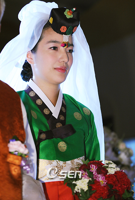 개그맨 염경환(36)의 결혼식이 5일 오후 서울 여의도 KT 컨벤션 웨딩홀에서 열렸다. 이 날 결혼식은 네 살배기 아들 은율과 아내 서현정(30)과 함께 '전통 퓨전'이라는 형식으로 한바탕 잔칫날을 만들기로 해 결혼식 전 과정을 공개했다. 이 날 결혼식의 사회로 지상렬, 주례 김병조, 축시 김구라, 축가 노사연과 박상민이 맡는다. 결혼식 서현정이 행진을 하고 있다./민경훈 기자 rumi@osen.co.kr