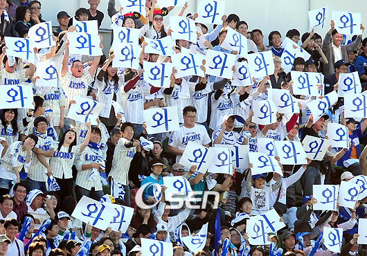 올 시즌 전국구장을 누비며 '마'바람을 일으켰던 롯데 자이언츠 팬들의 열띤 응원에 삼성 라이온즈 팬들이 '와'멍군으로 응수했다. 11일 대구구장에서 열린 2008삼성 PAVV 프로야구 준플레이오프 3차전에서 삼성 팬들이 비장의 카드를 꺼내들었다. 삼성 팬들은 롯데 팬들이 상대편 투수나 수비진의 견제구에 '마'(임마, 하지마라 등 의미의 경상도 사투리)라고 일제히 외치며 롯데 선수들을 응원하자 삼성 팬들은 '와'(왜그러는데라는 의미의 경상도 사투리)라는 외침과 동시에 준비된 카드를 펼쳐보이며 맞불을 놓아 눈길을 끌었다. 상황이 벌어진 것은 0-1로 뒤진 3회초 손광민이 안타를 치고 출루한 뒤 삼성 투수 윤성환이 견제구를 던지자 3루측 롯데 팬들은 평소처럼 '마'라고 적힌 카드와 외침을 날렸다. 이에 1루측 삼성 팬들은 기다렸다는 듯이 '와'라고 외치며 맞섰다. 4회초에도 똑같은 상황이 전개되는 등 양팀 팬들은 시종 치열한 응원전을 전개했다. 삼성 팬들은 준플레이오프전부터 롯데 팬들의 '마' 응원에 맞서기 위해 비장의 카드로 '와'를 준비했던 것으로 알려졌다. '마'라는 말이 사실 상대편 선수들에게는 기분 나쁜 말이기에 삼성 팬들은 삼성 선수들이 기죽지 않도록 '와'라는 기발한 대응말을 찾아낸 것이다. 대구구장은 장내에서는 선수들의 치열한 경기가 펼쳐지고 장외에서는 롯데 팬들의 '마'와 삼성 팬들의 '와'가 한 치 양보없는 '설전'이 벌어졌다. sun@osen.co.kr '2008 삼성 PAVV 프로야구 준플레이오프' 삼성 라이온즈와 롯데 자이언츠의 3차전이 11일 대구구장에서 벌어졌다. 롯데 응원단이 '마'라고 적은 응원도구로 응원을 하자 삼성은 '와'라고 적은 응원도구로 대응을 하고 있다./대구=손용호 기자spjj@osen.co.kr