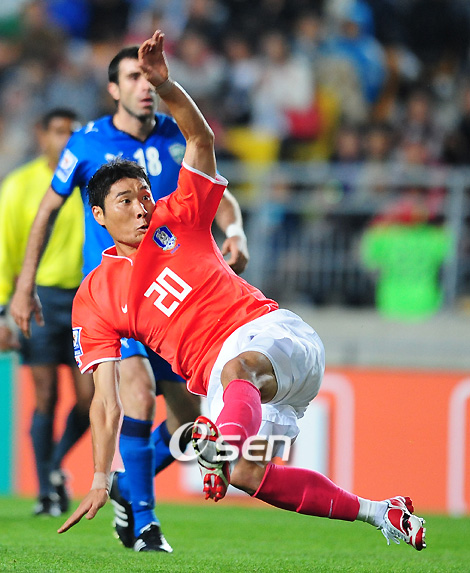 '늦깎이' 정성훈(부산)이 A매치 데뷔전서 성공적으로 나서며 허정무 감독의 눈도장을 받았다. 허정무 감독이 이끄는 축구 국가대표팀은 11일 수원 월드컵경기장에서 열린 우즈베키스탄과 평가전서 전반 3분 기성용과 후반 26분, 40분 이근호의 연속골에 힘입어 3-0 승리를 거두었다. 오는 15일 서울 월드컵경기장에서 열릴 2010 남아공월드컵 UAE와 최종예선 2차전을 앞두고 있는 대표팀은 1득점밖에 기록하지 못하는 부진을 겪었지만 정성훈이라는 새로운 공격수를 발굴하는 소득을 얻었다. 우즈베키스탄과 경기서 선발 출장한 정성훈은 190cm, 84kg의 탄탄한 체격을 바탕으로 유럽형 체형을 가진 상대 선수들과 몸싸움서 전혀 밀리지 않은 모습을 보였다. 올 시즌 K리그서 18경기에 출전해 5골 2도움을 기록하고 있는 정성훈은 자신의 특기인 포스트플레이를 살리기 위해 적극적인 헤딩을 통해 동료들에게 기회를 만들기 위해 노력했다. 지난 10일 파주 트레이닝센터(NFC)서 열린 훈련서 정성훈은 세트피스 상황서 적극적인 헤딩슛으로 연습을 지켜본 허정무 감독을 흐믓하게 만들었다. 또 프리킥 연습서도 날카로운 슈팅으로 실력을 과시했다. 정성훈은 이날 후반 11분 서동현(수원)과 교체되어 그라운드를 빠져 나갔다. 그러나 경기장을 메운 관중들은 대표팀의 새로운 얼굴인 정성훈에게 큰 박수를 보내며 그의 활약에 대해 만족감을 표시했다. 하지만 공격수인 정성훈은 가장 중요한 역할인 득점포를 가동하지 못했다. 물론 기성용(서울)의 골 상황과는 무관하게 적극적인 플레이를 통해 상대인 우즈베키스탄을 압박했지만 결과적으로 보여준 것은 없었다. 과연 절반의 성공을 기록한 정성훈이 빈곤한 득점력을 보였던 허정무 호의 새로운 공격수로 자리매김하게 될지 지켜볼 일이다. 10bird@osen.co.kr
