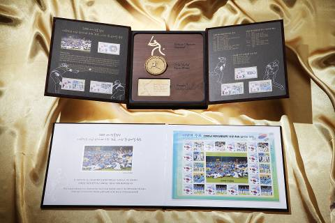 올림픽 전승 금메달 신화를 기념하는 기념우표 앨범전집이 판매된다. 한국 야구위원회 마케팅 자회사인 KBOP와 한국 우편사업단 지정사업자인 ‘나만의 우표’ 동양아이티 커뮤니티(www.mystamp.co.kr)는 업무제휴를 통해 14일부터 을 온라인 판매한다. 기념우표 앨범전집은 선수단 28명의 전원의 개별사진을 담은 개인우표, 환희와 감동의 순간을 담은 단체우표 전집 1세트, 순금으로 도금된 기념메달과 기념카드, 픽토그램 등으로 구성된 영광의 순간 히스토리북 1세트와 고급 케이스 등으로 구성되어 있다. 총 1만 부 한정 주문제작 판매될 예정인 은 한국 야구대표팀의 올림픽 금메달의 순간을 영원히 간직하고 싶어하는 야구팬들을 위해 제작했다. 한편 야구대표팀 기념우표 앨범전집 뿐만 아니라 박태환(수영)과 장미란(역도)의 기념우표 앨범전집도 각각 1만 부 한정 판매한다. sunny@osen.co.kr