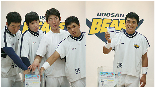 두산 베어스는 14일 '발야구 두산! 팀 도루수 맞히기' 팬성원 감사 이벤트 당첨자를 발표했다. 두산 베어스 역대 팀 최다 관중 돌파를 기념하고, 정규 시즌 동안 변함없는 응원과 관심을 보내준 팬들의 성원에 보답하는 차원에서 지난 9월 23일부터 잔여 홈 7경기에 입장 관중 대상으로 실시한 이번 이벤트에는 총 1만751명의 팬이 응모를 했다. 이 중 6%에 해당하는 652명의 팬이 정답(189개)을 맞혔으며, 정답자 가운데 이종욱(28), 고영민(24), 김재호(23), 김현수(20) 등 두산 베어스 선수단이 직접 추첨을 통해 당첨자를 선정했다. 먼저 두산베어스 팀내 최다 도루(47개)를 기록한 이종욱의 추첨을 통해 1등에 당첨된 최재완(노원구)씨에게는 삼성파브 보르도 LCD-TV를 선물로 증정하고, 16일(목) 플레이오프 1차전 경기에 앞서 시상식을 갖는다. 그리고, 팀내 두 번째로 많은 도루(39개)를 성공한 고영민의 추첨으로 뽑힌 2등 2명에게는 부상으로 SONY 브라비아 홈시어터를 증정하고, 3등(3명)과 4등(10명), 열혈상(5명)에 당첨된 팬에게는 2009년 중앙석 연간회원권(3등)과 SONY MP3 워크맨(4등), 2009년 해외전지훈련 참관권(열혈상) 등을 전달한다. 또한 아쉽게 정답을 맞히지 못한 아차상에 선정된 3명의 팬에게는 삼성 VLUU 디지털 카메라(1명)와 삼성 YEPP MP3 플레이어(2명)를 전달할 예정이다. 당첨자 발표와 관련된 자세한 사항은 두산 베어스 홈페이지에 공지되어 있다. farinelli@osen.co.kr 두산 베어스 제공.