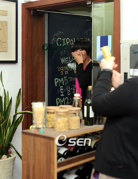 강원래-김송 부부가 지난 12일 서울 홍대 인근의 한 이탈리아 음식점에서 결혼 5년을 기념하는 깜짝 파티를 열었다. 이날 파티에서 강원래는 아내 몰래 영상편지를 준비하는가 하면 둘의 사연이 담긴 나무자전거의 신작 뮤직비디오 ‘내가 사랑해’를 틀어주며 사랑과 감사의 마음을 전했다. 나무자전거의 ‘내가 사랑해’ 뮤직비디오는 김송이 쓴 ‘장미를 사랑한 선인장’이라는 책 내용을 바탕으로 만화가 김준희 씨의 그림과 나무자전거의 노래가 덧입혀져 탄생됐다. 깜짝 파티가 준비된 줄 모르고 음식점에 들어서던 김송이 화들짝 놀라고 있다. /강희수 기자 100c@osen.co.kr