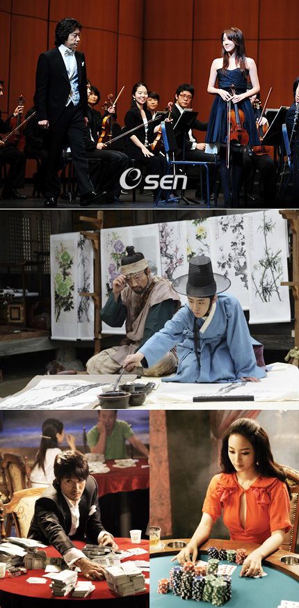 지상파 3사 드라마에 각각 예체능, 법과 가문, 도박 등이 담겨있어 이목을 끈다. 이전까지 방영된 ‘온에어’, ‘스포트라이트’,‘유리의 성’이나 최근 방영중인 ‘내 사랑 금지옥엽’ 등 방송가 이야기를 담은 드라마에서‘외과의사 봉달희’, ‘하얀거탑’등 병원 드라마와 ‘식객’ 등 음식 드라마에 이어 새로운 트렌드를 형성해가고 있는 것. 현재 방영중인 ‘바람의 화원’과 ‘베토벤 바이러스’,‘내 인생의 황금기’는 각각 미술과 음악, 체육 등 예체능을, ‘타짜’는 도박, ‘신의 저울’은 법, ‘가문의 영광’은 가문을 주요 소재로 하며 동시에 소재를 둘러싼 정보도 제공하고 있다. 먼저 조선시대 천재화가 단원 김홍도와 혜원 신윤복이 주인공인 SBS TV ‘바람의 화원’에는 그 속에 ‘그림’이 존재한다. 당시 그들이 그린 ‘미인도’와 ‘기다림’그리고 ‘단오풍정’ ‘군선도’ 등을 포함한 많은 그림들이 드라마에서 공개되며 시청자들의 눈길을 끌고 있다. 반면 MBC TV ‘베토벤 바이러스’에는 ‘음악’이 있다. 김명민과 이지아를 중심으로 매회 베토벤의 합창교향곡 9번을 포함, 일반인의 귀에 익숙한 클래식 음악이 실제연주와 배경음악으로 쓰이며 시청자들의 귀를 자극하는 중이다. MBC TV ‘내 인생의 황금기’에는 ‘체육’이 있다. 극중 주인공 이소연이 여고 육상코치로 출연해 육상에 대한 관심을 고조시켰고, 특히 이소연의 체육복을 입은 털털한 모습은 화제가 되기도 했다. 위 세 드라마에 예체능이 담겼다면 SBS TV ‘타짜’에는 ‘도박’이 시청자들의 눈과 귀를 솔깃하게 한다. 아버지에 대한 복수를 하기 위해 화투판을 전전하는 고니(장혁 분)를 중심으로 전개되는 ‘타짜’는 도박 장면이 나온다고 해서 도박 드라마가 아니라 엄밀히 말하면 욕망을 통한 세상 훔쳐보기가 드라마의 주된 포커스다. 또한 SBS 금요 프리미엄 드라마 ‘신의 저울’은 최근 시청자들 사이에서 한층 ‘법’에 대한 관심도를 높이는 데 한몫했다. 송창의, 이상윤 등이 주인공인 이 드라마는 일반인들에게 법에 대한 관심을 고조시켰을 뿐만 아니라 고시촌 풍경과 사법 연수원생들의 생활 등을 리얼하게 묘사해 현재 법조인을 꿈꾸는 신림동 고시생들이 뽑은 최고의 드라마에 꼽혔다. 한국의 대표작가인 김수현 작가는 최근 ‘신의 저울’과‘베토벤 바이러스’를 잘 만든 작품으로 손꼽으며 애청자라고 밝히기도 했다. 한편, 11일 ‘조강지처클럽’후속으로 첫 방송된 ‘가문의 영광’에는 ‘가문’이 있다. 극중 쌍둥이형제 수영과 태영역의 전노민, 김성민, 그리고 여동생 단아역의 윤정희가 가문에 대해 각기 달리 생각하면서 내용이 전개된다. 지난 12일 2회 방송분에는 극중 증조부의 전통 장례장면으로 시청자들의 주목을 받았다. 이처럼 드라마의 소재가 다양해지는 것에 대해 한 드라마 관계자는 “최근 시청자들의 관심과 욕구가 좀 더 세분화되고 다양해진만큼 드라마 또한 좀 더 구체적이고 시선을 사로잡을 만한 소재를 등장시키게 된다”며 “앞으로도 미처 그전에는 생각하지 못한 기발하고도 독특한 소재들이 드라마화되어 시청자들의 안방을 찾아갈 것”이라고 언급했다. yu@osen.co.kr 위에서부터 '음악'을 전면에 내세운 MBC TV '베토벤 바이러스' ,'미술'을 전면에 내세운 SBS TV '바람의 화원', '도박'이 주요소재인 SBS TV '타짜'.