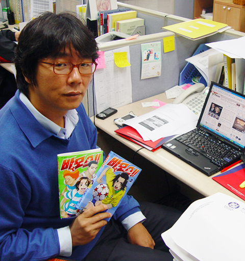 프로축구 현장에서 활약하고 있는 인물이 꿈꾸는 축구만화는 어떤 내용일까? 박선재 대전 시티즌 지원팀장이 '바모스(그림 조재호, 서울 문화사)'라는 제목의 축구 만화 단행본 2본을 발간해 화제를 모으고 있다. 지난 7월 대전에 입단하기 전까지만 해도 현역 에이전트로 활약했던 박 씨는 "대전 구단의 바쁜 업무 속에서도 지난 경험을 되살리며 즐겁게 만들었다. 에이전트 시절 브라질의 방방곡곡을 돌아다니며 보고 느꼈던 생생한 축구 이야기를 담아보았다"고 밝혔다. 그만큼 박 씨의 경험이 담긴 이 만화에는 그 자신이 브라질에서 보고 느꼈던 브라질 축구의 모든 것이 생동감 있게 녹아있다. 단행본의 마지막에 담겨있는 브라질 이야기는 브라질과 브라질 축구에 대한 지식과 철학을 느낄 수 있는 소중한 자료로 평가받고 있다. 전남 드래곤즈의 브라질 출신 공격수 슈바는 "만화 '바모스'는 브라질에서 축구선수를 꿈꾸는 소년들의 진짜 이야기를 담고 있다. 나도 기회가 되면 꼭 등장하면 좋겠다"고 밝혔다. 박 씨는 "에이전트와 구단 직원으로 일하면서 그들을 둘러싼 이야기들을 많이 접한 것이 스포츠드라마 위주의 기존 작품들보다 더 흥미로운 이야기들을 만들어 낼 수 있는 것 같다"며 "독자들에게 배울 것과 얻을 것이 많은 이야기를 제공할 수 있도록 노력하겠다"고 말했다. 대전 시티즌 제공. stylelomo@osen.co.kr