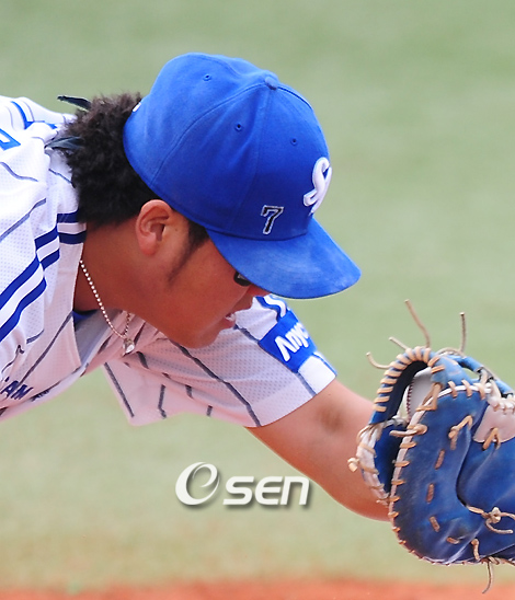 삼성 라이온즈 내야수 박석민의 모자에는 숫자 '6'과 '7'이 적혀 있다. 왼쪽에 적힌 '6'은 룸메이트 김재걸(36)의 등번호. 김재걸은 지난달 11일 대구구장에서 열린 두산과의 경기 도중 상대 투수 이원재가 던진 공에 늑골을 맞아 골절상을 입었다. '방장' 김재걸의 부상 완쾌를 기원하는 '방졸' 박석민의 마음. 8일 롯데와의 준PO 1차전에서 5타수 4안타 3타점 2득점 맹타를 휘두르며 1차전 MVP로 선정된 박석민은 "방송 인터뷰할때 (김)재걸 선배에게 고맙다는 말을 하고 싶었는데 그러지 못해 미안한 마음이 든다"고 말할 만큼 선배를 향한 마음이 남다르다. 그렇다면 '7'의 의미는 무엇일까. 박석민은 "별 뜻 없어요"라고 손사래를 친 뒤 사연을 공개했다. 박석민은 11일 준PO 3차전 도중 롯데 포수 강민호(23)의 무릎에 부딪치며 왼쪽 7번 갈비뼈에 실금이 가는 부상을 입었다. 플레이오프 출장이 불투명한 상황 속에서 선동렬 삼성 감독은 그의 이름을 잊지 않았다. 1,2차전에는 선발 라인업에서 제외하고 상태가 호전되면 3차전부터 출장 시킬 계획이었다. 박석민은 16일 잠실구장에서 열린 두산과의 PO 1차전에 앞서 자신이 다친 왼쪽 7번 갈비뼈가 빨리 쾌유되길 바라는 뜻에서 '7'을 적었다. "제가 다친 갈비뼈가 7번이거든요. 빨리 낫기를 바라는 뜻에서 적었어요". 박석민은 아직 통증이 남아 있다고 설명했다. "아직 통증이 남아 있어요. 테이핑이랑 압박 붕대를 감고 출전하는데 땅볼 잡은 뒤 1루 베이스로 뛰어갈때 조금 아파요". 19일 두산과의 3차전에 1루수 겸 3번 타자로 선발 출장, 3회 2타점 선제 2루타를 포함 4타수 2안타 2타점 1득점을 기록한 박석민은 "오늘 경기에 나가 잘 해서 다행입니다"라고 넉살 좋게 웃었다. 흐물흐물한 성격과 만화 캐릭터처럼 친근한 이미지로 자리매김한 박석민. '볼매'(볼수록 매력적이라는 뜻)라는 그의 별명처럼 삼성팬들의 최고 인기남으로 떠올랐다. 어쩌면 삼성을 넘어 프로야구 정상급 스타로 거론될지도 모르겠다. what@osen.co.kr
