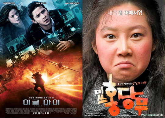 할리우드 영화 ‘이글아이’가 2주 연속 박스오피스 1위를 차지했으며 이번 주에 새로 개봉한 영화 ‘미쓰 홍당무’가 박스오피스 2위에 자리했다. 20일 오전 영화진흥위원회 영화관입장권 통합전산망의 집계에 따르면 9일 개봉한 영화 ‘이글 아이’는 43만 7173명의 관객을 동원하며 박스오피스 1위에 올랐다(440개 상영관). 누적 관객수 132만 6279명. 2위는 16일 개봉한 공효진 주연의 영화 ‘미쓰 홍당무’로 20만 1122명의 관객을 끌어 모았다(355개 상영관). 누적관객수 25만 3027명. 3위는 뮤지컬 영화 ‘맘마미아!’로 11만 7807명의 관객을 동원했다(289개 상영관). 누적관객수 404만 3329명. 4위는 ‘미쓰 홍당무’와 같은 날 개봉한 ‘공작부인: 세기의 스캔들’로 9만 6827명의 관객이 관람했다(243개 상영관). 누적관객수 11만 8044명. 5위는 ‘데스 레이스’로 6만 3972명을 끌어 모았다(179개 상영관). 누적 관객수 7만 4526명. crystal@osen.co.kr