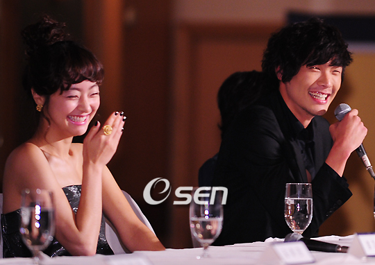 KBS 2TV 새 월화드라마 '그들이 사는 세상'의 제작발표회가 서울 서초구 반포동 JW메리어트호텔 그랜드볼룸에서 열렸다. 이 자리에는 표민수 감독과 노희경 작가, 그리고 송혜교 현빈 엄기준 배종옥 김여진 최다니엘 이다인 서효림 등 출연진이 참석했다. '그들이 사는 세상'은 드라마 제작현장을 생동감 있게 그려낸 작품으로 현빈과 송혜교가 드라마에서 PD역을 열연하게 된다. 기자회견 중 최다니엘의 말에 서효림이 환하게 웃고 있다./민경훈 기자 rumi@osen.co.kr