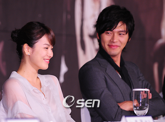KBS 2TV 새 월화드라마 '그들이 사는 세상'의 제작발표회가 서울 서초구 반포동 JW메리어트호텔 그랜드볼룸에서 열렸다. 이 자리에는 표민수 감독과 노희경 작가, 그리고 송혜교 현빈 엄기준 배종옥 김여진 최다니엘 이다인 서효림 등 출연진이 참석했다. '그들이 사는 세상'은 드라마 제작현장을 생동감 있게 그려낸 작품으로 현빈과 송혜교가 드라마에서 PD역을 열연하게 된다. 기자회견 중 현빈이 미소짓는 송혜교를 바라보고 있다./민경훈 기자 rumi@osen.co.kr