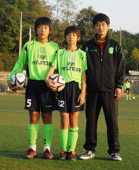 K리그 전북 현대의 U-12세 유소년팀의 유동식(삼천초 6년), 임병찬(인후초 6년)군과 안재석 코치가 '2008 MBC 국제꿈나무축구대회'에 대표로 선발됐다. 이번에 대표에 선발된 유동식은 전북현대 유소년 팀의 주장으로 165cm, 53kg의 좋은 체격을 가지고 있는 중앙수비수로서 대인방어와 위치선정에 이은 제공권 장악이 능력이 뛰어나다. 또 미드필더인 임병찬은 153cm, 41kg의 다소 왜소한 체격이지만 볼 키핑 능력과 패스능력이 뛰어나 초등학생수준을 넘어선다는 평가를 받고 있다. 코치를 맡게된 안재석 코치는 지난 2002년부터 전북현대 유소년팀을 맡아 각종 전국대회 우승을 이뤄냈고 우수지도자상을 여려차례 수상하는 등 한국 유소년 축구를 짊어지고 갈 지도자 가운데 한 사람이다. 대표팀에 선발된 유동식은 "대표로 선발된 만큼 최선을 다하겠다. 국제대회에 참가하는 만큼 좋은 추억을 만들 수 있도록 하겠다"고 대표 선발 소감을 밝혔다. 그리고 임병찬은 "앞으로 국가대표가 되는 것이 꿈이다. 이번에 국제대회를 처음 나가는 만큼 많은 것을 배워 오겠다"고 말했다. 한편 이번 대회는 오는 11월 3일부터 7일까지 김해운동장에서 한국대표 2팀(재단대표와 유소년연맹대표)과 일본, 남아공, 중국, 호주, 카자흐스탄, 홍콩 등 8개국 이 두 개조로 나누어 각조 상위 1, 2위 팀이 결선에 진출하게 되며 이들은 오는 25일 소집을 해서 1주일 가량 부여 구드래구장에서 합동훈련을 실시한다. 10bird@osen.co.kr 전북 현대 제공.