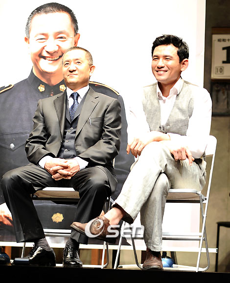 영화배우 황정민이 8년만에 꾸미는 연극무대인 연극 ‘웃음의 대학’(연출 이해제) 프레스콜이 24일 오후 서울 대학로 동숭아트센터 동숭홀에서 열렸다. ‘웃음의 대학’은 24일 저녁 초연해 내달 30일까지 이어지는 황정민-송영창의 2인극으로 일본작가 미타니 코우키의 작품이다. 송영창과 황정민이 취재진의 질문을 받고 있다. /강희수 기자 100c@osen.co.kr