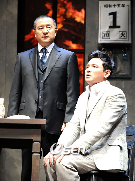‘웃음의 천재’라는 일본 최고의 인기 작가 미타니 코우키(46)의 연극 ‘웃음의 대학’이 24일 본 공연을 앞두고 프레스콜로 맛뵈기를 선보였다. 24일 오후 1시에 열린 연극 ‘웃음의 대학’ 제작발표회에서는 8년 만에 연극무대로 복귀하는 구수한 연기자 황정민(38)의 열정적인 웃음연기에 기대가 모아졌다. 배우 황정민은 극중 민중에게 웃음을 선사하는 극작가를 연기한다. 제작발표회 현장에서 황정민은 작품에 참여해 무대에 서는 것에 대해 "2인극은 처음 한다"며 "너무 재미있는 작품"이라고 소감을 밝혔다. 배역을 소화하는 데 어려움은 없었냐는 기자 질문에 “모노드라마 형태여서 대사량이 많아 외우는 데 어려웠다”며 소탈한 웃음을 지으며 대답했다. 오랜만에 보는 반가운 얼굴, 송영창에게도 소감을 묻는 질문이 던져졌다. 송영창은 "랜만에 연극무대에 오르는 것은 아니다"며 "그 동안 흥행이 안돼서 잘 모를 것 같다"고 머쓱하게 대답했다. 애초 황정민과 문성근이 호흡을 맞추기로 했던 것인데 SBS 드라마 '신의 저울'에 출연 중인 문성근의 스케줄이 어려워 송영창이 급히 캐스팅 된 것이라며 “좋아하는 문성근 선배가 하려던 역이여서 잘할 수 있을 지 싶었지만 연기 잘하는 황정민 배우와 잘 맞춰갈 수만 있다면 나역시 좋은 연기가 되지 않을 까 싶다”고 밝혔다. 연극무대에 선 실력파 배우의 연기와 ‘웃음의 연금술사’ 미타니 코우키가 선보이는 웃음에 기대가 모아지는 작품이다. jin@osen.co.kr 연극 ‘웃음의 대학’의 하이라이트 장면을 연기하고 있는 송영창과 황정민. /강희수 기자 100c@osen.co.kr
