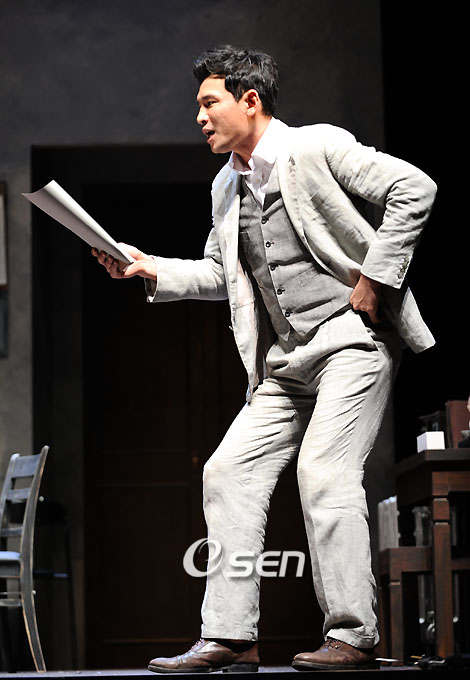 영화배우 황정민이 8년만에 꾸미는 연극무대인 연극 ‘웃음의 대학’(연출 이해제) 프레스콜이 24일 오후 서울 대학로 동숭아트센터 동숭홀에서 열렸다. ‘웃음의 대학’은 24일 저녁 초연해 내달 30일까지 이어지는 황정민-송영창의 2인극으로 일본작가 미타니 코우키의 작품이다. 황정민이 취재진을 위해 하이라이트 장면을 연기하고 있다. /강희수 기자 100c@osen.co.kr