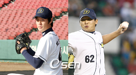 데뷔 첫 포스트 시즌이 눈앞에 다가왔다. 두산 베어스의 신인 우완 박민석(19)과 신고선수 출신 좌완 원용묵(22)이 한국 시리즈 엔트리에 이름을 올리며 김경문 감독의 기대를 한 몸에 받고 있다. 박민석과 원용묵은 지난 23일까지 일본 미야자키서 열린 휘닉스 교육리그에 참가하다가 24일 리그 종료와 함께 귀국했다. 박민석은 플레이오프 직전까지 팀 훈련에 참여한 뒤 플레이오프 엔트리 등록에 실패하며 미야자키로 향했다 다시 1군에 복귀하게 되었고 원용묵은 지난 5일 일찌감치 교육리그에 참가했다가 연일 호투를 선보인 덕택에 데뷔 첫 포스트 시즌을 맞게 되었다. 장충고를 졸업하고 2차 7순위로 신인지명 막차를 탄 박민석은 올시즌 15경기에 등판해 1패에 그쳤으나 평균 자책점 1.63으로 나쁘지 않은 모습을 보이며 두산 팬들의 관심을 모았다. 시즌 도중 한화 김인식 감독은 박민석을 가리켜 "굉장히 좋은 유망주다. 수년 후에는 임창용(32. 야쿠르트)급 투수로 성장할 수 있을 것"이라며 이례적인 극찬을 아끼지 않았다. 특히 박민석은 고교 시절 보기 드물게 완급 조절 능력과 위기 관리 능력을 갖춘 선발형 맞춤 투수로 극찬을 받았던 투수다. 고교 3학년 시절 오버핸드 투구폼으로 바꿨다가 투구 밸런스가 무너지는 바람에 2차 지명서 순위가 크게 밀리기는 했지만 2학년 때까지의 가능성만 봤을 때는 분명 '1인자'의 풍모를 보여주던 투수 중 한 명이었다. 박민석은 올시즌 SK를 상대로 5경기에 등판해 7⅓이닝 동안 무실점으로 쾌투를 펼쳤다. 탈삼진 9개를 뽑아낸 구위 또한 대단했으며 피안타율 또한 1할3푼6리에 그치며 대단한 구위를 선보였다. 우완 스리쿼터임에도 불구, 좌타자 김재현(33)을 4타수 무안타(삼진 2개)로 봉쇄했다는 점 또한 이채롭다. 올시즌 단 1경기 출장에 그쳤던 원용묵의 가세는 그야말로 깜짝 카드와도 같다. 두산은 지난해에도 정규 시즌 출장이 없던 이혜천(29)을 미야자키 교육리그서 데려오며 한국 시리즈 엔트리에 등록했으나 이혜천은 1998년 데뷔 이후 베어스 왼손 계보의 한 축이 되었던 선수다. 그에 반해 원용묵은 두산 팬들에게도 그리 익숙한 선수가 아니다. 청원고(전 동대문 상고) 시절 볼끝이 묵직한 왼손 투수로 많은 기대를 모았으나 정작 3학년이 되어서는 별다른 족적을 남기지 못하며 드래프트서 고배를 마셨던 원용묵은 또 하나의 '연습생 신화'를 노리는 투수이기도 하다. 올시즌 원용묵은 2군 리그서 13경기에 계투로 주로 등판하며 2패 1홀드 평균 자책점 2.92를 기록했다. 표본이 적을 뿐 더러 24⅔이닝 동안 사사구 14개로 제구력에서도 약점을 보인 원용묵이었지만 두산 입단 이후 투구폼 수정이 많았다는 점을 감안해야 한다. 입단 시 몸을 비트는 듯한 투구폼을 가지고 있었던 원용묵은 이후 투구폼 수정에 심혈을 기울인 끝에 교육리그서 어느 정도의 성과를 확인했다. 최고 148km에 이르는 묵직한 볼끝도 무시할 수 없다. 원용묵은 지난 2시즌 동안 SK전 등판이 없던 투수다. 투수 본인에게 부담이 될 수 있으나 맞대결한 경험이 없다는 점은 상대 타선에도 부담으로 다가오게 마련이다. 변수는 투수 본인이 얼마만큼 강심장을 발휘하는 가에 있는데 원용묵은 교육리그서 요미우리와의 경기서 꽤 호투를 펼쳤다. 11일 요미우리전서는 1.5군 선수들을 상대로 선발 등판, 5회까지 무실점 투구를 펼쳤고 20일 경기서는 이승엽(32)을 3구 삼진으로 잡아내는 모습을 보여줬다. 그동안 승부처에서 제구력이 흔들리는 모습을 보이며 팀의 믿음을 사지 못했던 원용묵이었지만 교육리그서 그는 분명 한 단계 더 발전한 모습을 보여주었다. 데뷔 후 처음으로 포스트 시즌 무대를 밟게 된 박민석과 원용묵. '깜짝 발탁'으로 두산 팬들의 기대를 모으고 있는 두 유망주가 한 단계 더 발전한 모습으로 계투진에 힘을 불어넣을 수 있을 것인지 점점 기대가 커지고 있다. farinelli@osen.co.kr 박민석-원용묵.