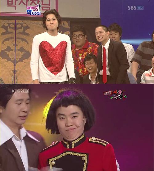 KBS 2TV ‘개그콘서트’에서 박지선이 SBS ‘웃음을 찾는 사람들’(이하 웃찾사)의 인기 캐릭터였던 만사마로 변장한 데 이어 ‘웃찾사’ 개그맨들이 ‘개그콘서트’의 달인, 왕비호로 분해 웃음을 선사했다. 24일 방송된 ‘웃찾사’에서는 달인과 왕비호가 등장했다. 실제 김병만, 류담, 노우진 등 ‘달인’ 팀이 등장하고 윤형빈이 출연한 것이 아니라 개그 소재로 패러디 됐다. ‘MC리의 믿거나 말거나’ 코너에서는 “‘달인’의 웅담(류담 패러디)입니다. 오늘은 16년 동안 트림을 한 번도 하지 않은 달인을 모셔보겠습니다”며 ‘달인’에서 했던 개그를 선보였다. ‘절대감 박사장님’ 코너에서는 이용진뿐만 아니라 이재형도 왕비호 의상을 입고 출연했다. 이용진은 “‘개콘’ 왕비호 잘 들어. 내가 너보다 더 비호감이야”라고 독설 아닌 독설을 날렸고 이재형은 ‘저질 댄스’로 웃음을 선사했다. 이에 앞서 19일 방송된 ‘개그콘서트-대포동 예술단’에서는 개그우먼 박지선이 만사마 정만호와 판박이 모습으로 등장해 화제가 됐다. ‘뚜루뚜 뚜뚜 뚜루뚜 뚜뚜’ 멜로디의 고유 음악을 그대로 사용했을 뿐만 아니라 의상과 모션, 표정까지 100% 재현해 박수를 받았다. 최근 코미디에서 방송사 간 경계 허물기는 더 과감해 졌다. 타 방송사를 언급하는 정도에서 끝나는 게 아니라 캐릭터를 그대로 모사하는 경우가 늘고 있다. 개그맨들끼리 이런 캐릭터 차용은 암묵적으로 용인 된다. 한 개그맨은 이에 대해 “실제 당사자들에게 말하는 경우도 있지만 굳이 말하지 않아도 개그 소재로 이해하고 넘어간다. 오히려 캐릭터를 차용하면 오리지널에게 좋은 것 아니냐”며 긍정적인 면을 설명했다. 하지만 똑같이 캐릭터를 차용해 웃음을 만들었지만 반응은 제각각이다. 자의적인 해석이 들어간 패러디가 아닌 단순 ‘카피’(모사)는 실망감을 안겨줄 수 있다. 일부 시청자들은 “신선하고 창의적인 개그 계발에 노력해달라” “소재가 떨어져 남의 캐릭터를 그대로 따라하는 무성의로 보인다”고 평하기도 한다. 캐릭터 차용도 좋은 개그 소재가 될 수 있지만 독창적인 해석이나 자기 것으로 소화하지 못한 채 ‘따라하기’에 급급하다면 유쾌한 웃음을 선사할 수 없다. miru@osen.co.kr